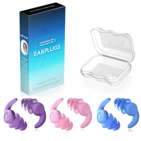 - Q: How many pairs of ear plugs are included in the package? A: The package includes three pairs of ear plugs, each in different colors: purple, pink, and blue.