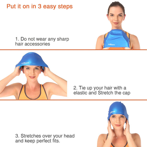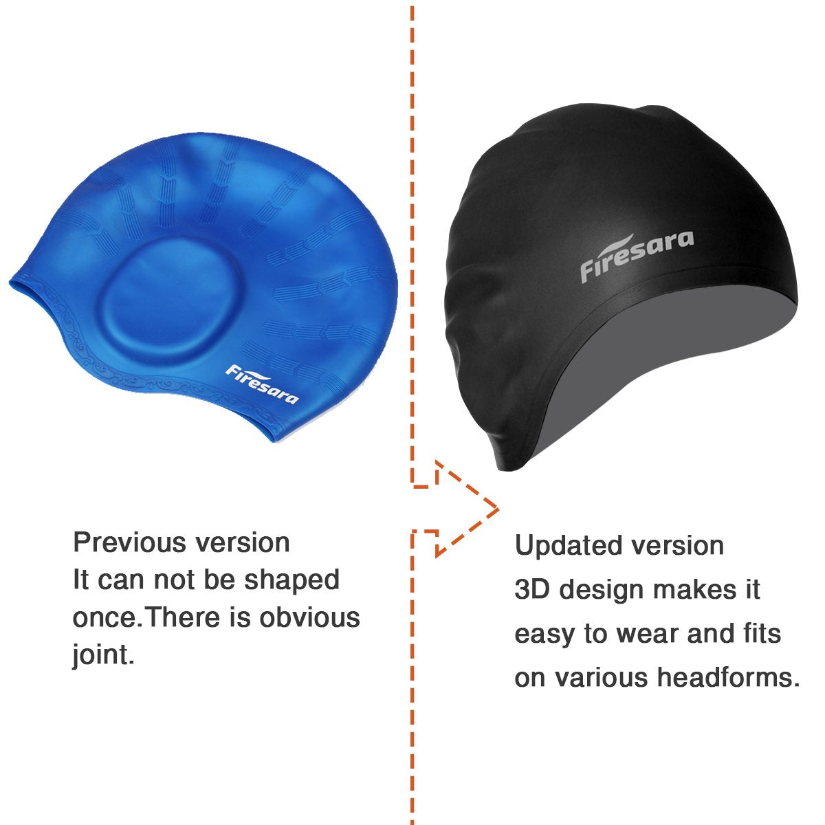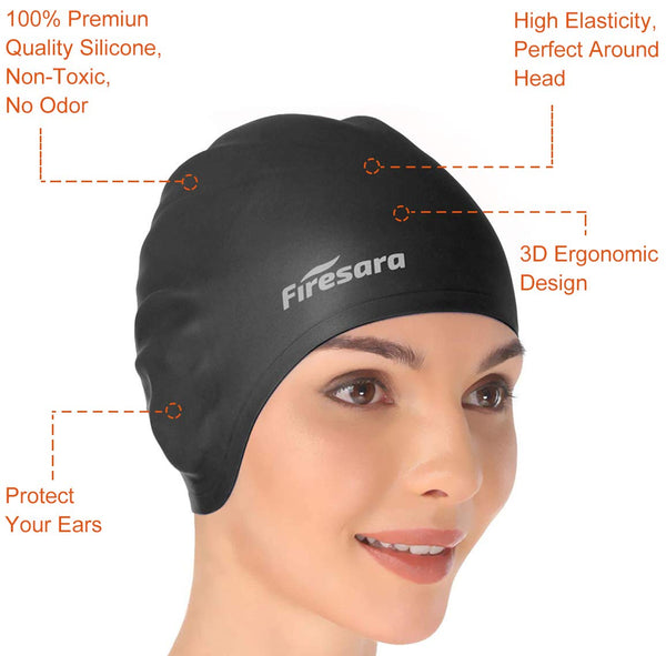 Firesara:More fun for life More fun with swimming Firesara high quality swimming cap is specially designed to solve all the potential problems The extra nose clip and ear plugs will offer further protection for you It suits both young people as well as adults with long hair, protecting your hair from the harmful substances in the water The unique 3D ergonomic design makes it easy and quick to take on and off without snagging hair and keep the water out It can protect your hair and ears and makes your swimming more enjoyable Firesara swim cap for both recreational and competitive events from regular swimming to synchronized swimming, water polo etc Swim cap + Nose clip + Ear Plugs -NEW MATcH to redefine your SWIMMINg EXPERIENcE Swimming cap: 1100% top-class silicone, eco-friendly, non-toxic and odorless 2 Specially 3D ergonomic design to protect the ears and to reduce drag 3With elastic that makes getting on and off easily without snagging our hair 4 Prevent chlorine from contacting our scalp and hair