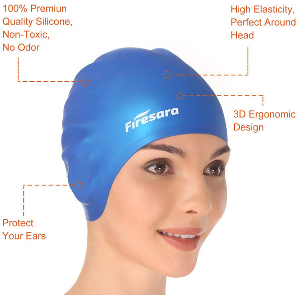 Fireside: more fun for life More fun with swimming fire Sara high quality swimming cap is specially designed to solve all the potential problems The extra nose clip and ear plugs will offer further protection for you It suits both young people as well as adults with long hair, protecting your hair from the harmful substances in the water The unique 3D ergonomic design makes it easy and quick to take on and off without snagging hair and keep the water out It can protect your hair and ears and makes your swimming more enjoyable Fireside swim cap for both recreational and competitive events from regular swimming to synchronized swimming, water polo etc 2 Specially 3D ergonomic design to protect the ears and to reduce drag 4 Prevent chlorine from contacting our scalp and hair
