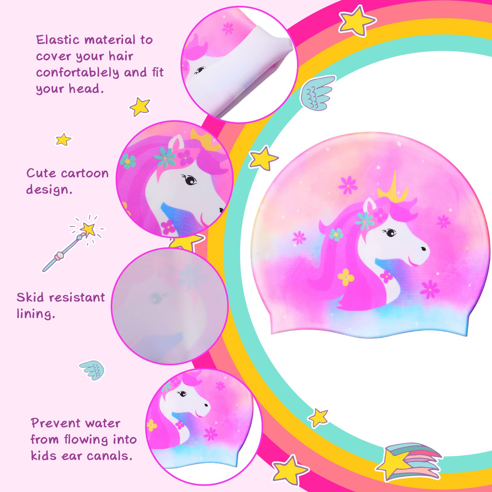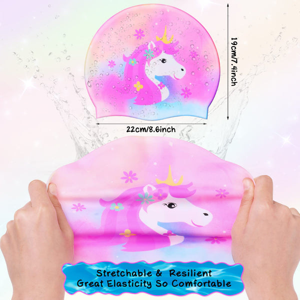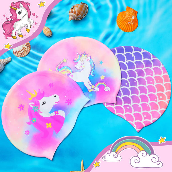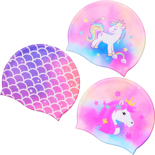 Syhood 3 Pcs Kids Swim Caps Baby Waterproof Bathing Caps Children Cartoon Swimming Hat For Long Short Hair Kids Boys Girls (Mixe