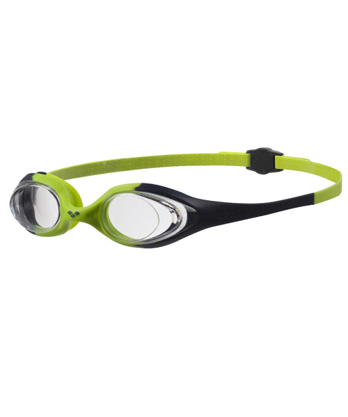 arena's easy, safe and colorful arena Junior Spider Goggles are designed for young swimmers aged 6 to 12. These colorful swim goggles for boys and girls are made with extremely soft hypoallergenic silicone seals for maximum comfort and non-mirrored lenses with anti-fog coating. The single strap with a back clip offers a secure fit and maximum ease of use. The snug fit prevents water leakage and the nose bridge adapts its shape to the face while on. With a smaller profile to fit a smaller face and a hydrodynamic design, these Spider youth non-mirrored goggles are very comfortable, easy to use, and great for daily training. This style is available with clear lenses for low-light environments and for those who prefer maximum brightness, medium-dark lenses for all uses, and dark lenses for bright environments or those who prefer maximum light shielding.