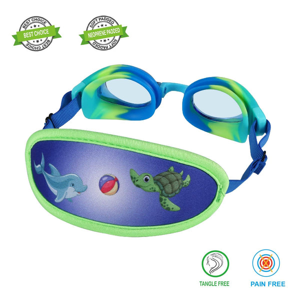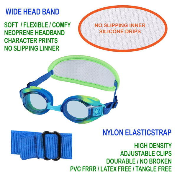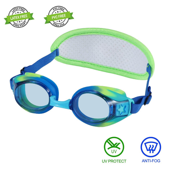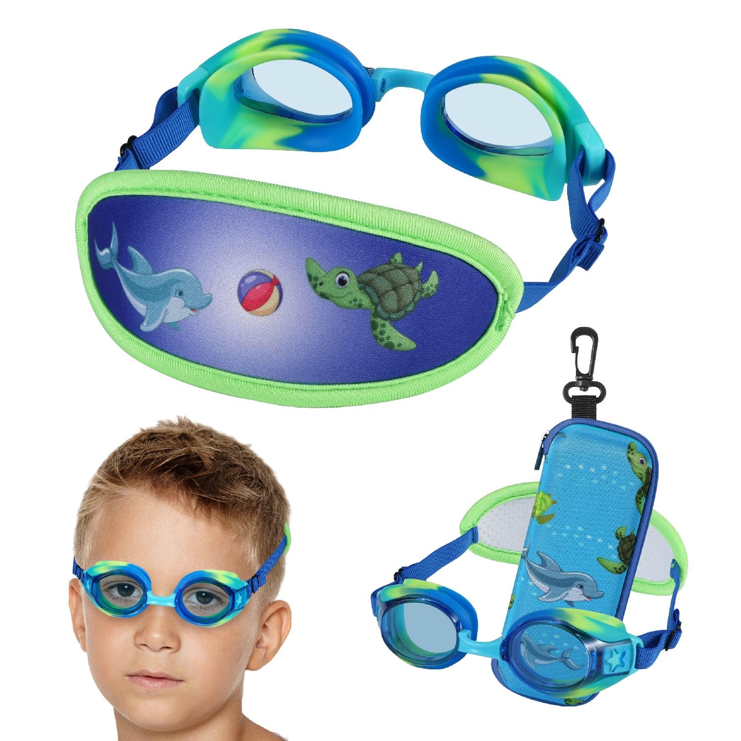 Ruigao Kids Swim Goggles Age 2-6, Toddler Goggles No Hair Pull,Child Goggles Padded Headband (1Pk - Blue Turtle)