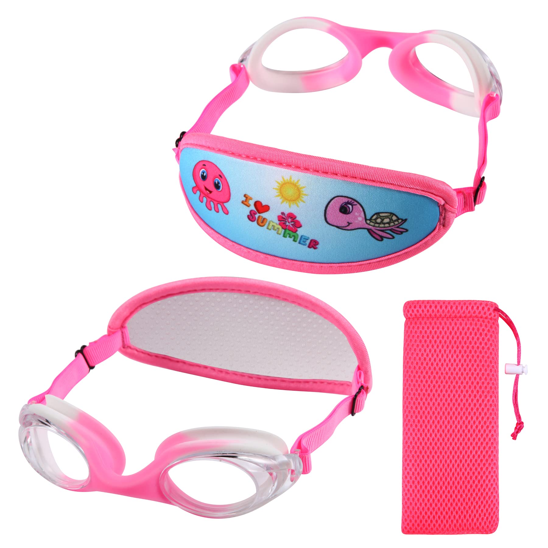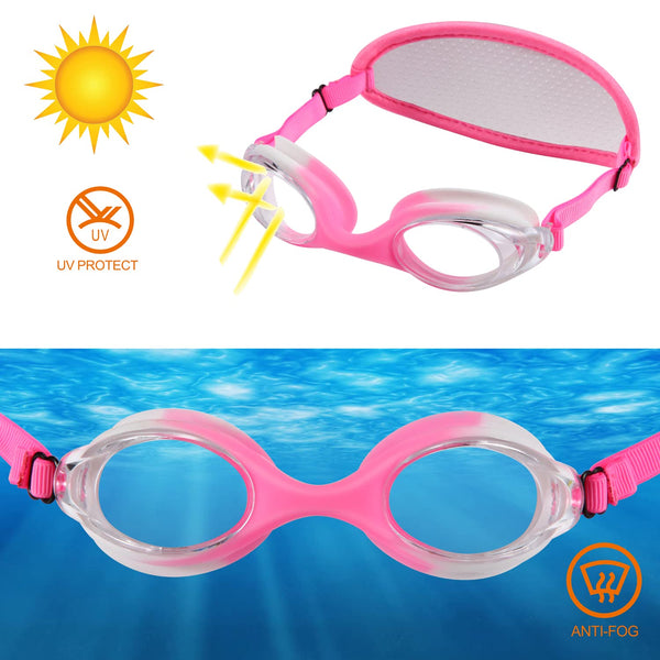 Ruigao Kids Swim Goggles Age 2-6, Toddler Goggles No Hair Pull,Child Goggles Padded Headband (1Pk Kids - Fun Sunmer)