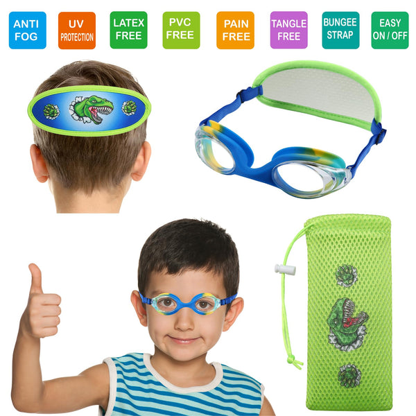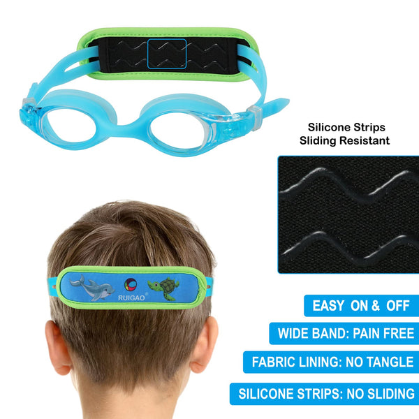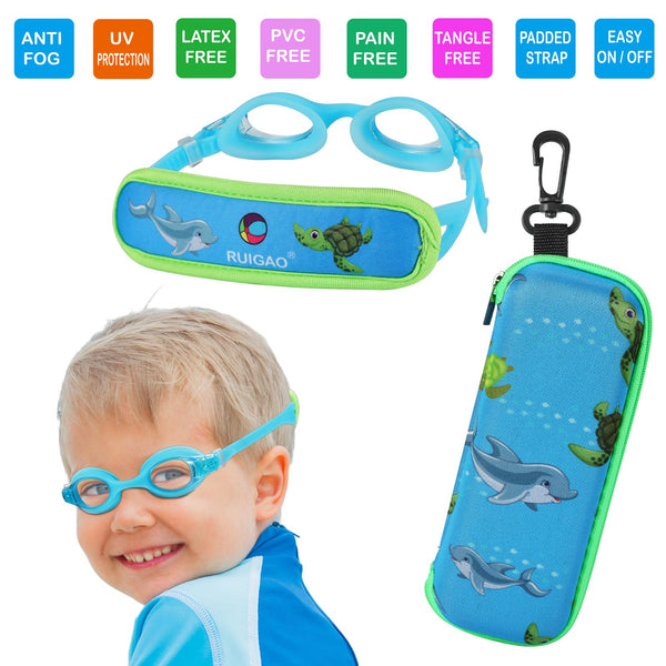 Ruigao Kids Swim Goggles Age 2-6, Toddler Goggles No Hair Pull,Child Goggles Padded Headband (2Pk Toddler - Dino & Dolphin)