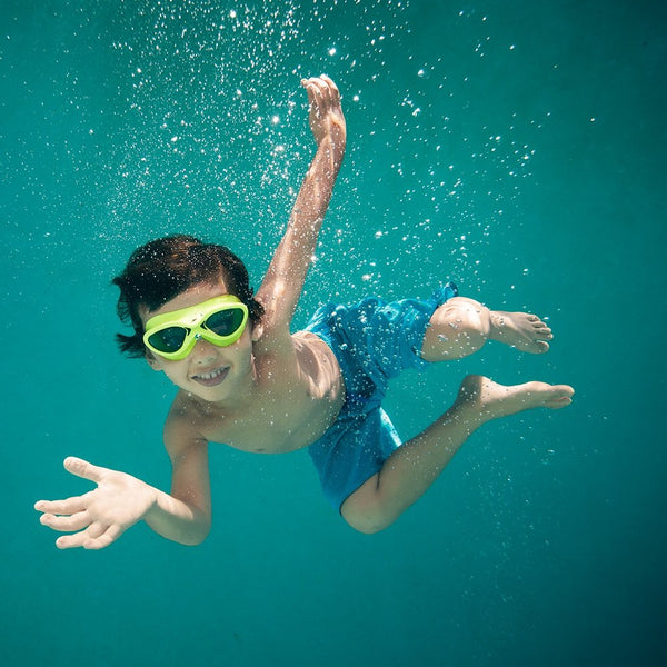 They'll experience the full coverage of a mask and performance of a goggle while using this swim mask, specially made for smaller faces. The hybrid design features anti-fog lenses with UV protection, so developing eyes stay safe from chlorine and the sun. Designed for kids ages 3-8.
