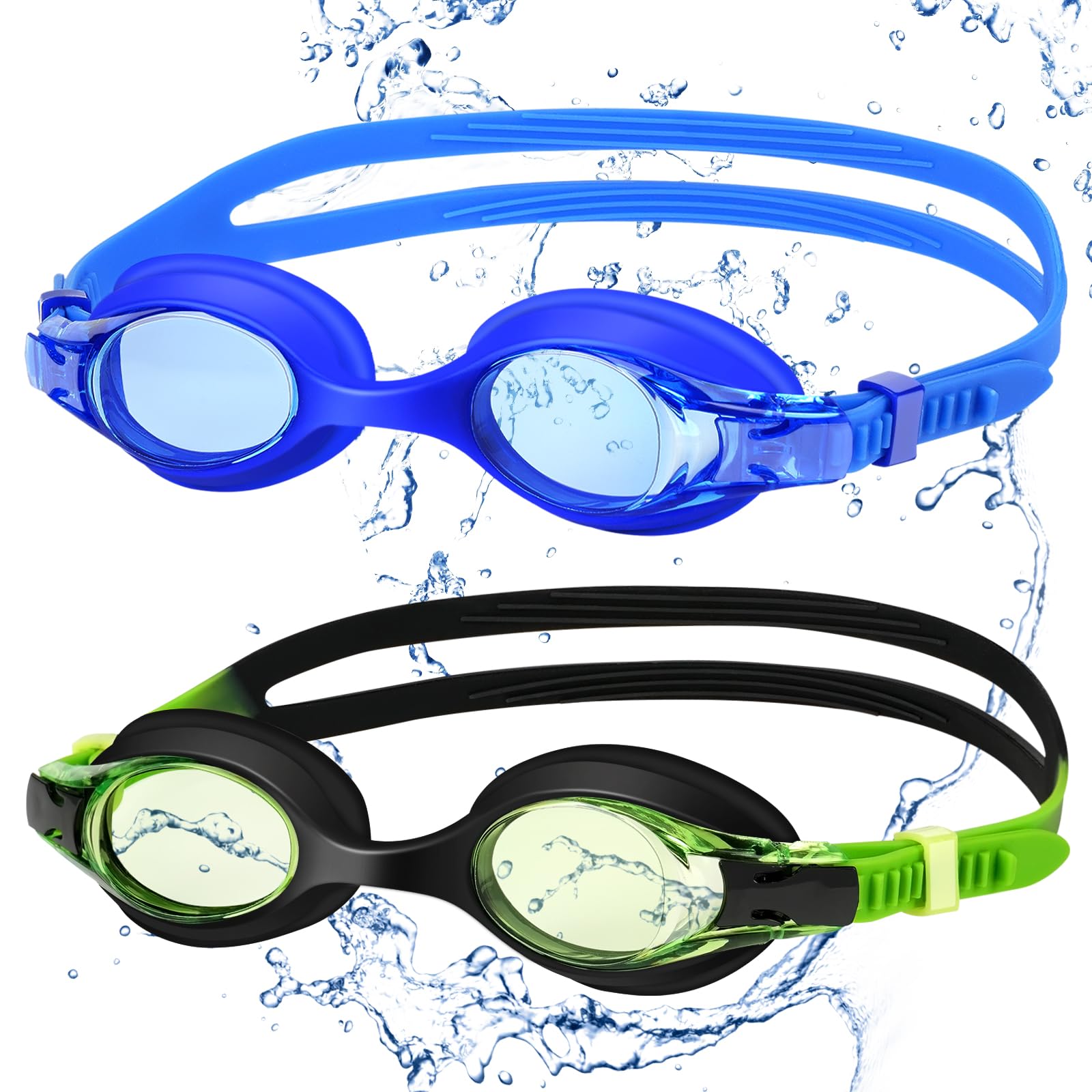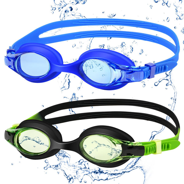 2 Pack kids Swimming goggles is perfect for exploring the underwater world for kids Made of ultra-soft silicone material, swimming googles adopts a frame-integrated design which could fits well into different face types, no need to adjust the nose bridge, which is suitable for 6-14 years old Kid Produdct Feature: 1 Anti-Fog Lens: Provide you with clear long-distance vision underwater 2 Eye Protection and No Water Leakage Design: high-quality silicone material effectively blocks water infiltration while protecting your eyes and preventing red marks 3 Panoramic Vision that Fits the Face Shape: The integrated design reduces the trouble of adjustment, and brings you a clear panoramic vision while conforming to the face shape design 4 Easy Adjustment: Easy-to-adjust side pull buckles and flexible silicone splits bring you the most comfortable wearing experience 5 Suitable for children aged 6-14 How to adjust the strap 1 To Tighten: Just pull the outside strap from the goggles 2 To Loosen: Press the side-buckle, then pull the inner strap from the goggles care Instructions: 1 Keep your goggles clean to increase the productAs lifespan 2 Rinse gently with cold, fresh water after every use then allow the goggles to air dry Avoid wiping the lenses to preserve the anti-fog coating 3 Keep goggles out of the sun when not in use Package Included: Swim gogglesA2, portable caseA1, gift boxA1, user manual, and 12 months warranty If you have any questions about the swim goggles, please feel free to contact us