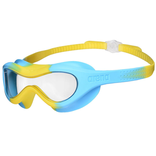The easy, safe and colorful arena Kids Spider Swim Mask is designed for young swimmers aged 2 to 5. Soft hypoallergenic silicone seals and a large frame deliver maximum safety. The single strap with a back clip offers a secure fit and maximum ease of use. The nose bridge adapts its shape to the face while on. The snug fit prevents any water leakage. With a large frame for wide vision, this swim mask for children is equipped with anti-fog coating and is PVC free. This style is available with clear lenses for low-light environments and for those who prefer maximum brightness or medium-dark lenses for all uses and variable or intermediate light levels.