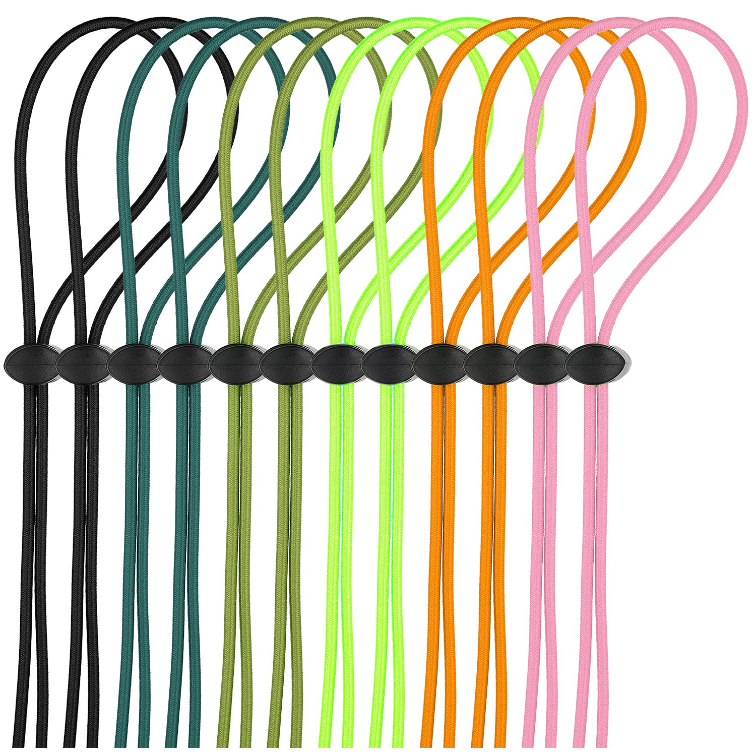 12 Sets bungee cord strap kit, includes adjustable replacement swimming goggle strap goggle bungee strap with cord lock clamp for swim goggles swimming supplies Features: Various colors: 6 Different colors are offered to you, including black, orange, green, army green, pink and dark blue, each color has 2 pieces, which can meet your different matching needs, easy to install and will not affect the beauty of your goggles. One size fits most: These swimming goggle straps can fit most goggles, nice helper for replacing broken straps, save your time to choose size. The cord locks clamps can help you adjust your swim goggles quickly and easily, will bring you a lot of convenience. Specifications: Material: elastic interior with woven outer layer Length: approx. 1 m/ 40 inches Thickness: approx. 3 mm/ 0.12 inches Color: black, orange, green, army green, pink and dark blue Package includes: 12 x Swimming goggle straps 12 x Cord lock clamps Warm notice: Please allow measurement error. The colors may exist slight difference due to different screens.