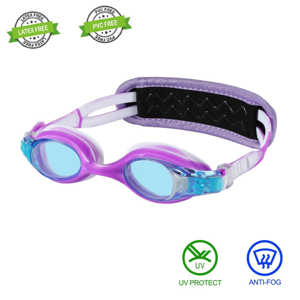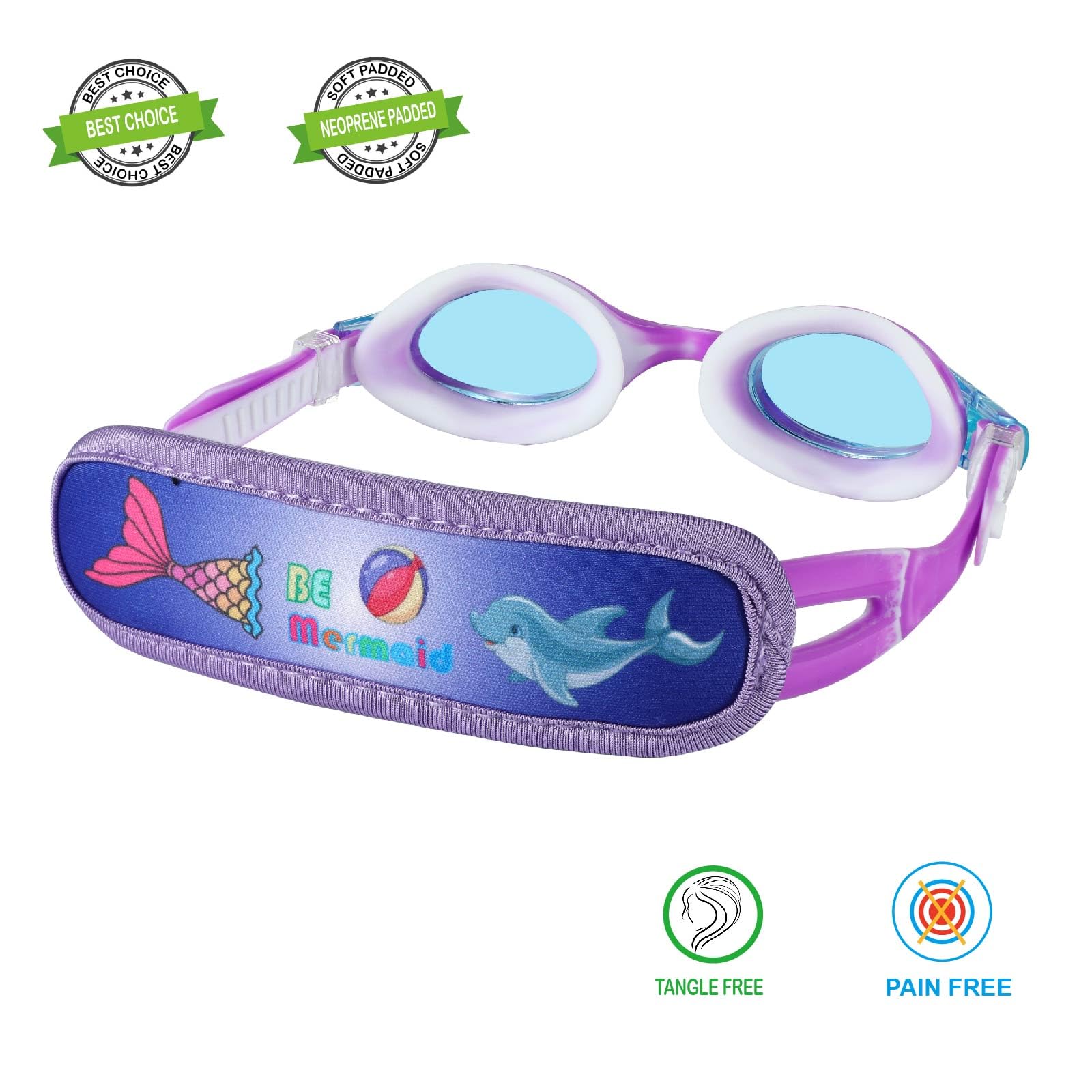 Toddler goggles 3-6 Years old, Kids Goggles for swimming, Purple Dolphin/Mermaid swim goggles for little girls