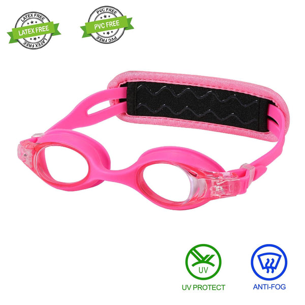 Ruigao Kids Swim Goggles Age 2-6, Toddler Goggles No Hair Pull,Child Goggles Padded Headband (1Pk - Pink)
