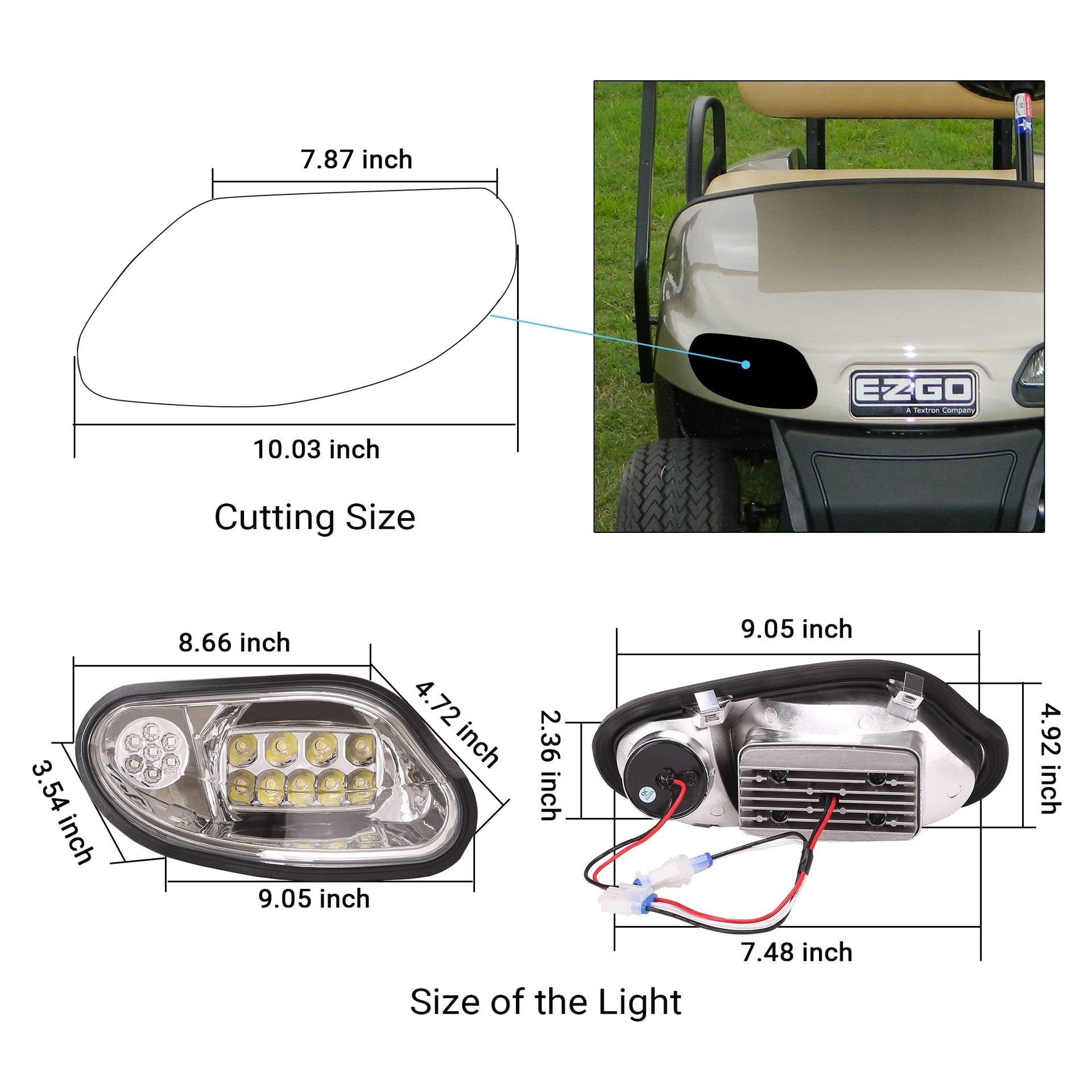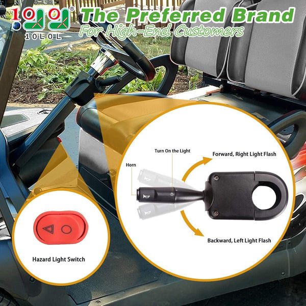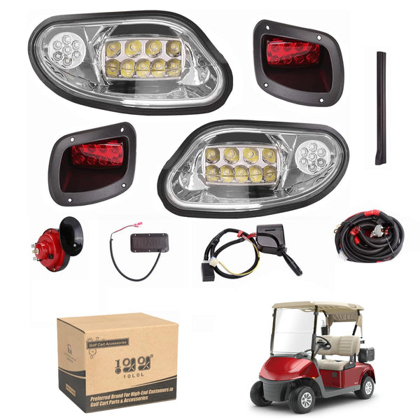 Upgrade your EZGO Freedom TXT / T48 golf cart with the 10L0L Golf Cart Light Kit. This complete headlight taillight kit is designed to enhance visibility and safety on the road or the golf course. The kit includes 2 front headlights, 2 taillights, 1 headlight switch, 1 wiring harness, cutting hole templates, and a screw set. With the included installation instructions, installing the light kit is a breeze. Crafted with durability in mind, these light kits are specifically designed for EZGO Freedom TXT / T48 2014-up gas and electric models. They are built to withstand outdoor conditions and provide reliable performance. Please note that these light kits operate on 12V. If your EZGO golf cart is 48V or 36V, you will need to purchase a separate 48V-12V or 36V-12V voltage reducer (not included) to ensure compatibility. Upgrade your golf cart with the 10L0L EZGO Golf Cart Light Kit and enjoy enhanced visibility and safety. Invest in quality and reliability for your golf cart accessories. Order now and experience worry-free driving.