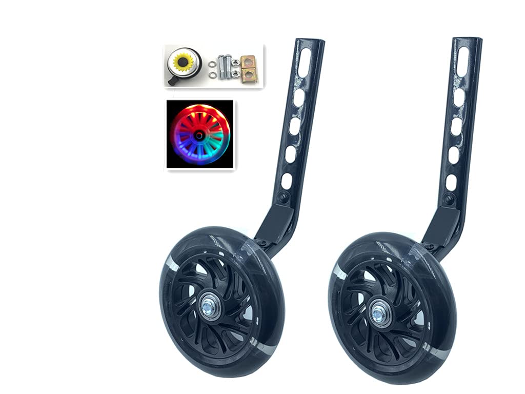 Yjia A Pair Of Children'S Bicycle Riding Flash Silent Training Wheels, Suitable For 12-20 Inch Single Speed Bicycles (Black111)