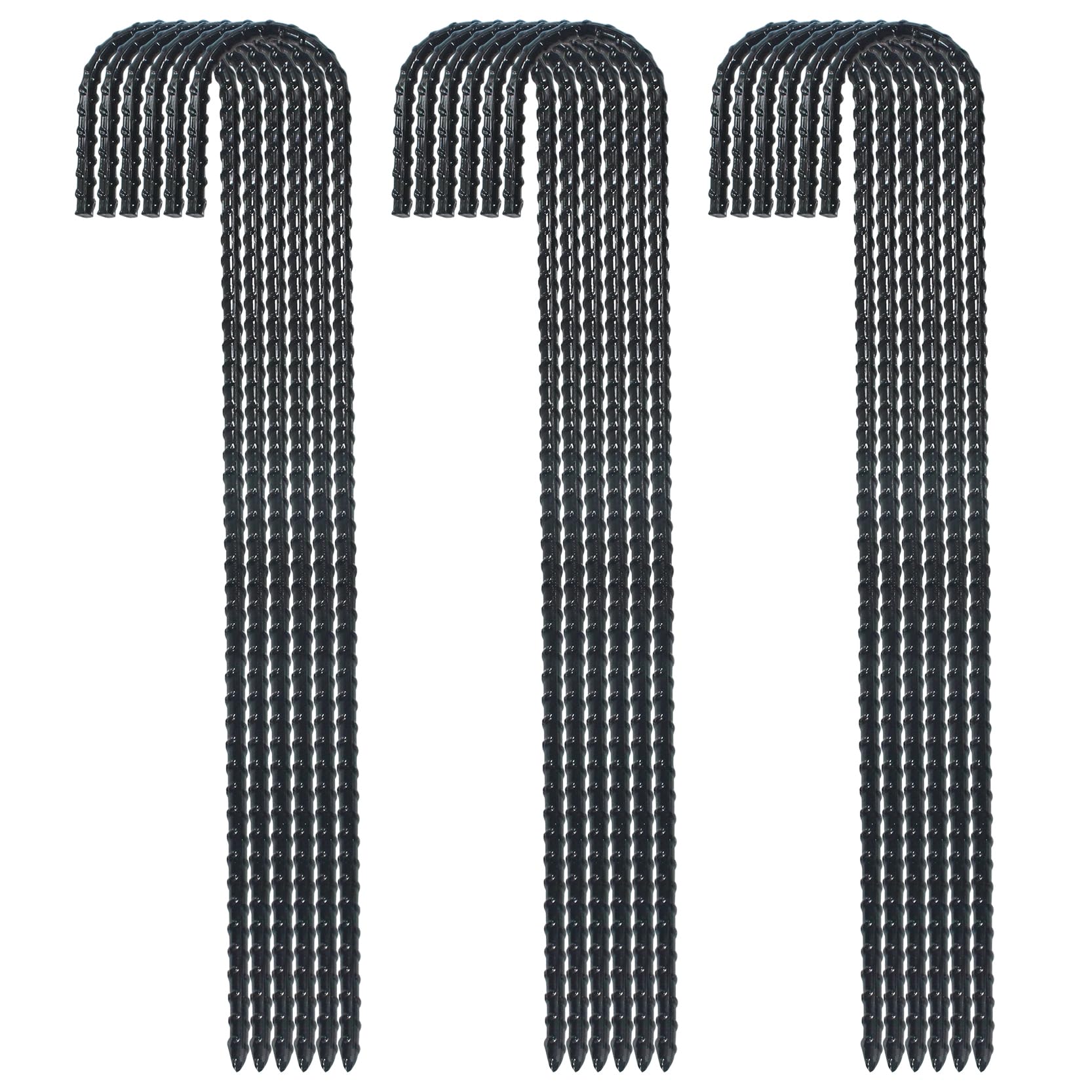 ?HEAVY DUTY REBAR STAKES J HOOK? Heavy Duty Trampolines stakes are 0.4in round diameter and 16in length. Proper thickness makes it hard to be broken. Anti-Rust Each Tent Stakes are made of solid high-quality materials which are not easy to rust and corrode. The black powder coated steel bar facing increases their ability of weather resistance and can be used for many years. Flat end & Sharp End Sharp end design makes them easier to insert into hard and rocky soil. Wide Application Swing sets, slides, fences, yard decorations, tents, nets