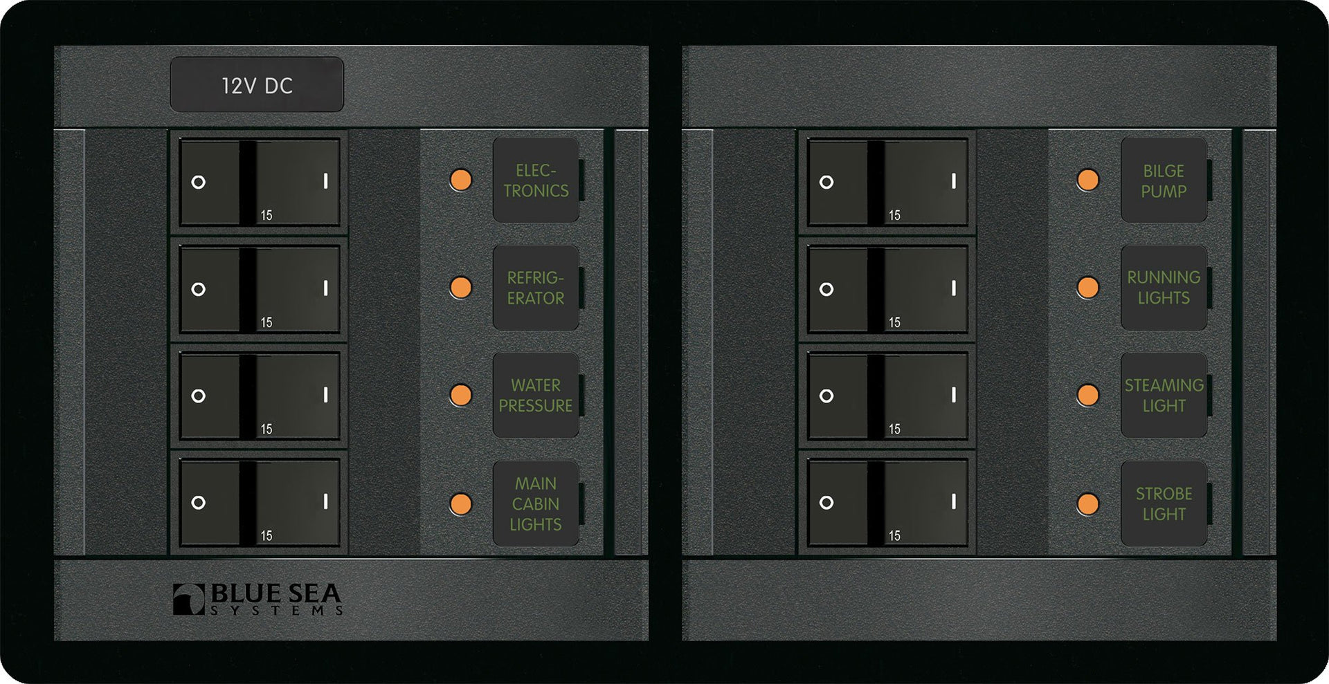- Q: What is the Blue Sea Systems 1225 12 Volt DC 8 Position used for? A: The Blue Sea Systems 1225 is a 12-volt DC panel system designed for managing multiple branch circuits in marine or automotive applications.