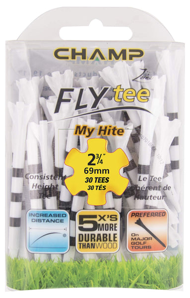 - Q: What is the length of the Champ 86509 Zarma Flytee My Hite golf tees? A: The Champ 86509 Zarma Flytee My Hite golf tees are 2-3/4 inches in length.