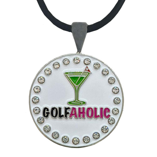 This golf ball marker necklace is perfect for using during a round of golf! It features a Giggle Golf bling golf ball marker on a 17'' golf necklace with a magnetic pendant. Comes packaged in a cute organza bag.