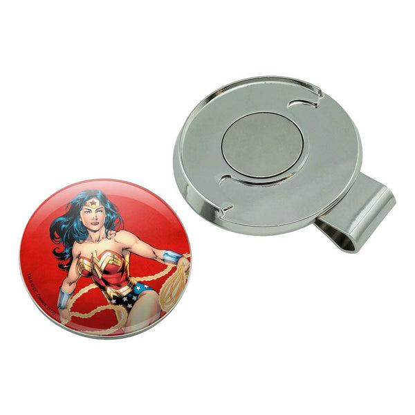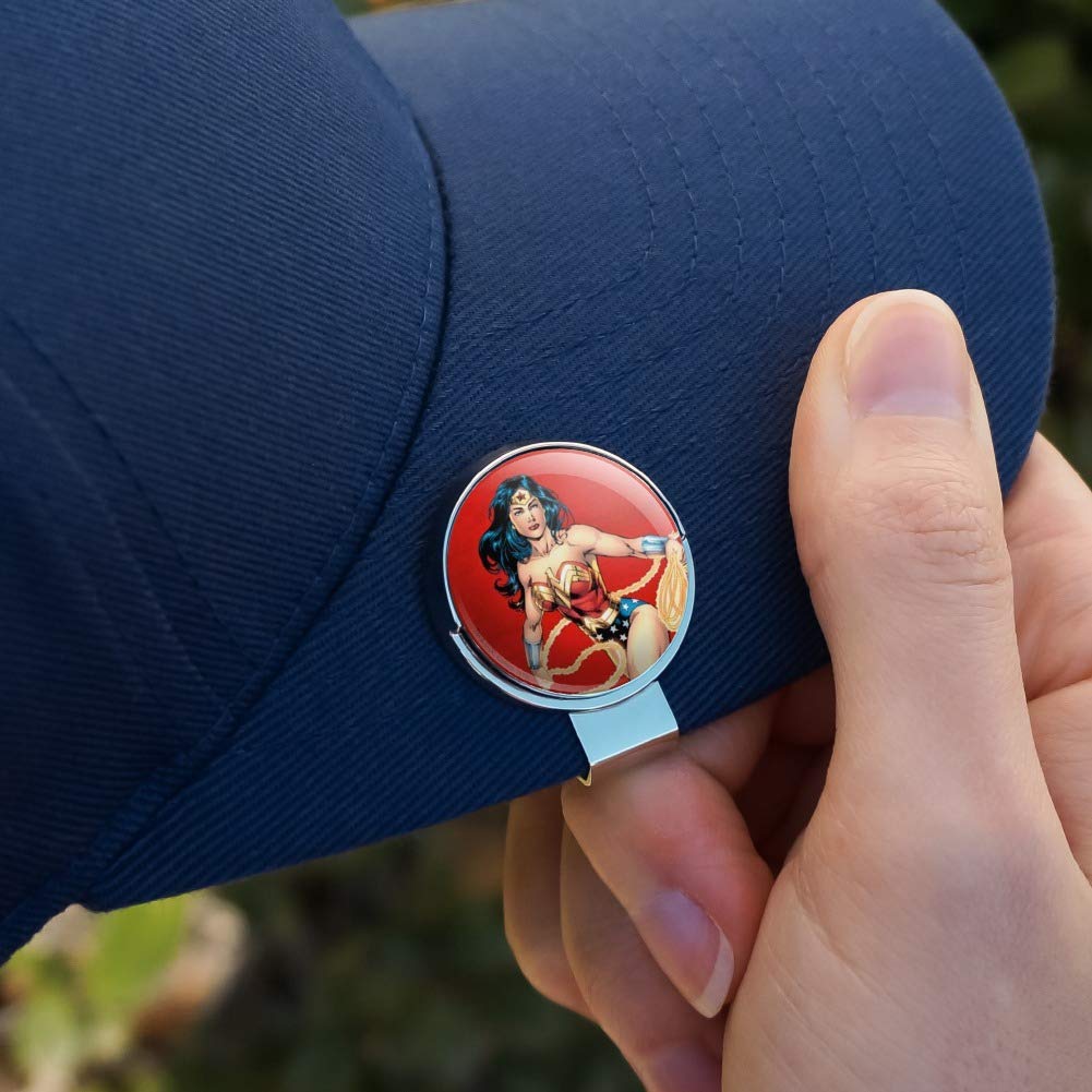 About The Product: If youre a fan of golfing, or know someone that is, then youll definitely tee happy with this tee-rrific new product from Graphics and More! Introducing the Hat Clip/Ball Marker, a perfect combination that putts the tee in part-tee! This handy accessory clips to your golf hat, and the resin-topped image is a removable ball marker as shown. Both a cool attachment and useful tool, this Graphics and More product is a hole-in-one! About The Design: Wonder Woman first appeared in DC Comics in 1941. Armed with her lasso of truth, bracelets, and tiara, she fights villains such as Ares, and Cheetah. Wonder Woman has starred in TV shows and feature films as played by Linda Carter and Gal Gadot. If you're a fan youll love this official Wonder Woman product!