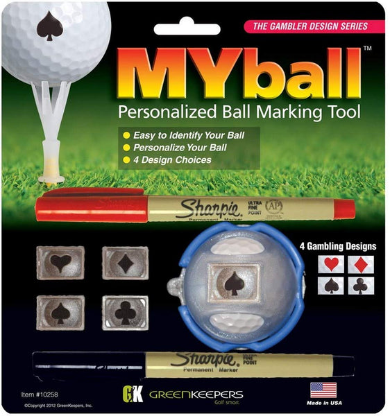 - Q: How many designs are included with the marking tool? A: The Green Keeper Myball Marking Tool offers four different design choices to personalize your golf ball.