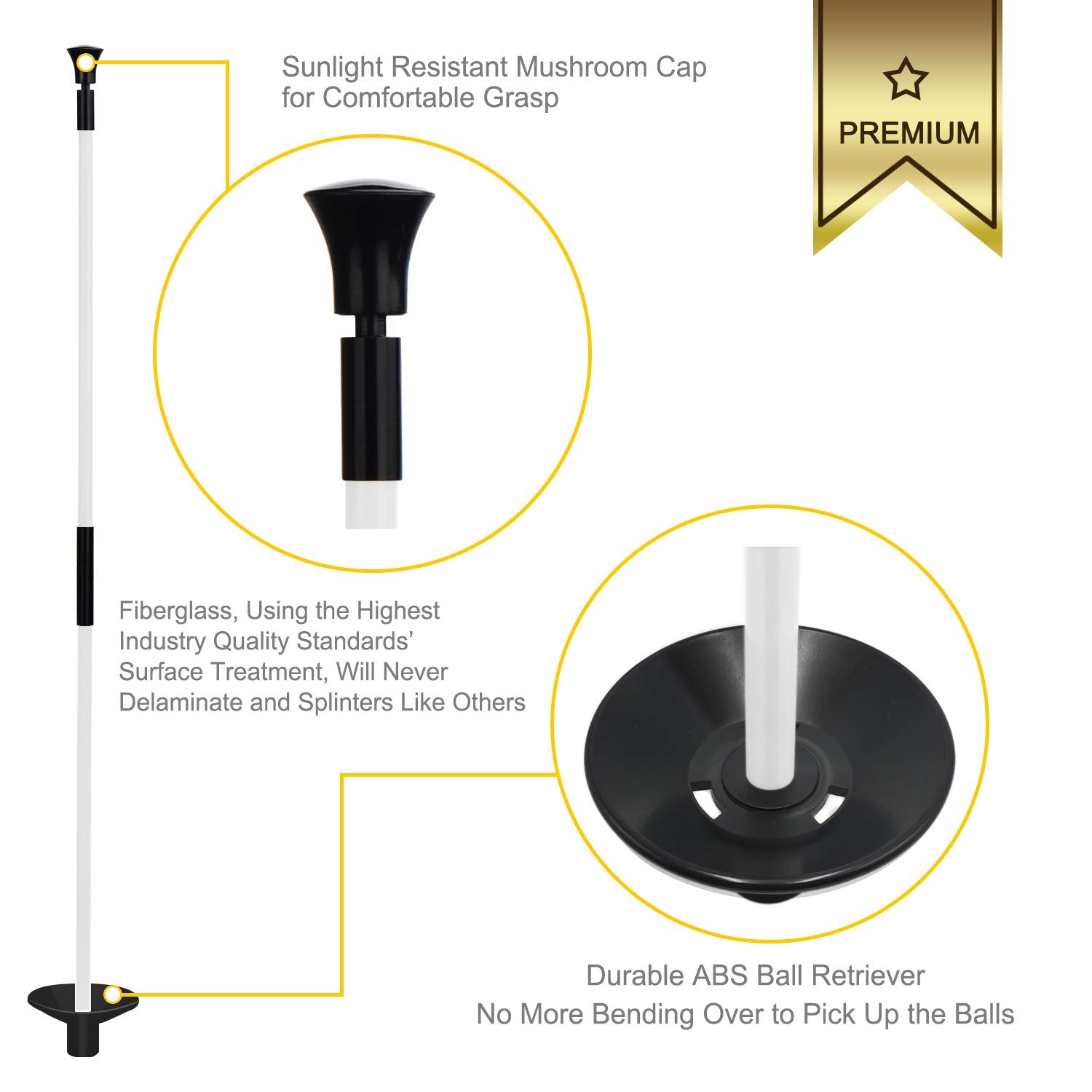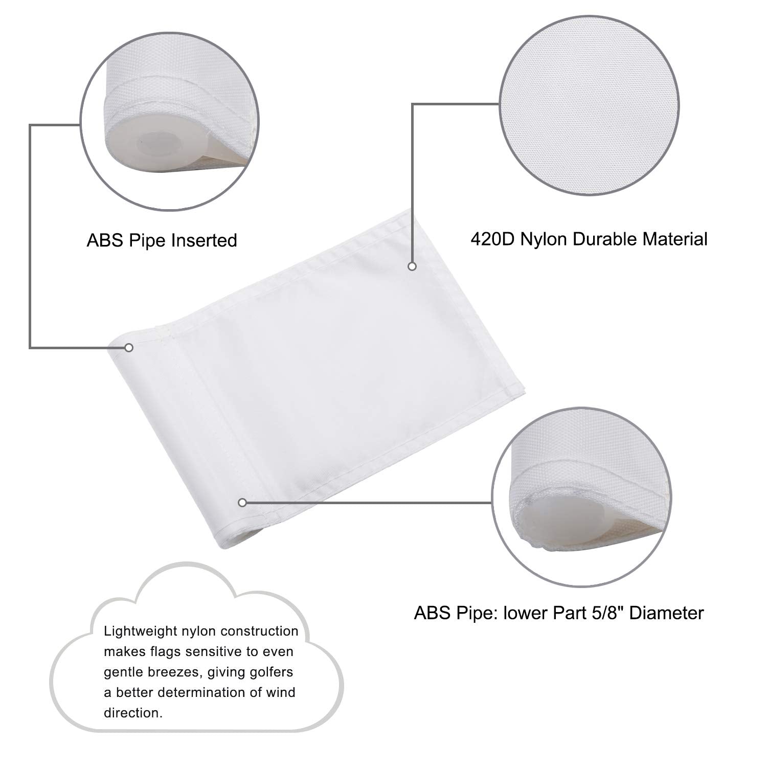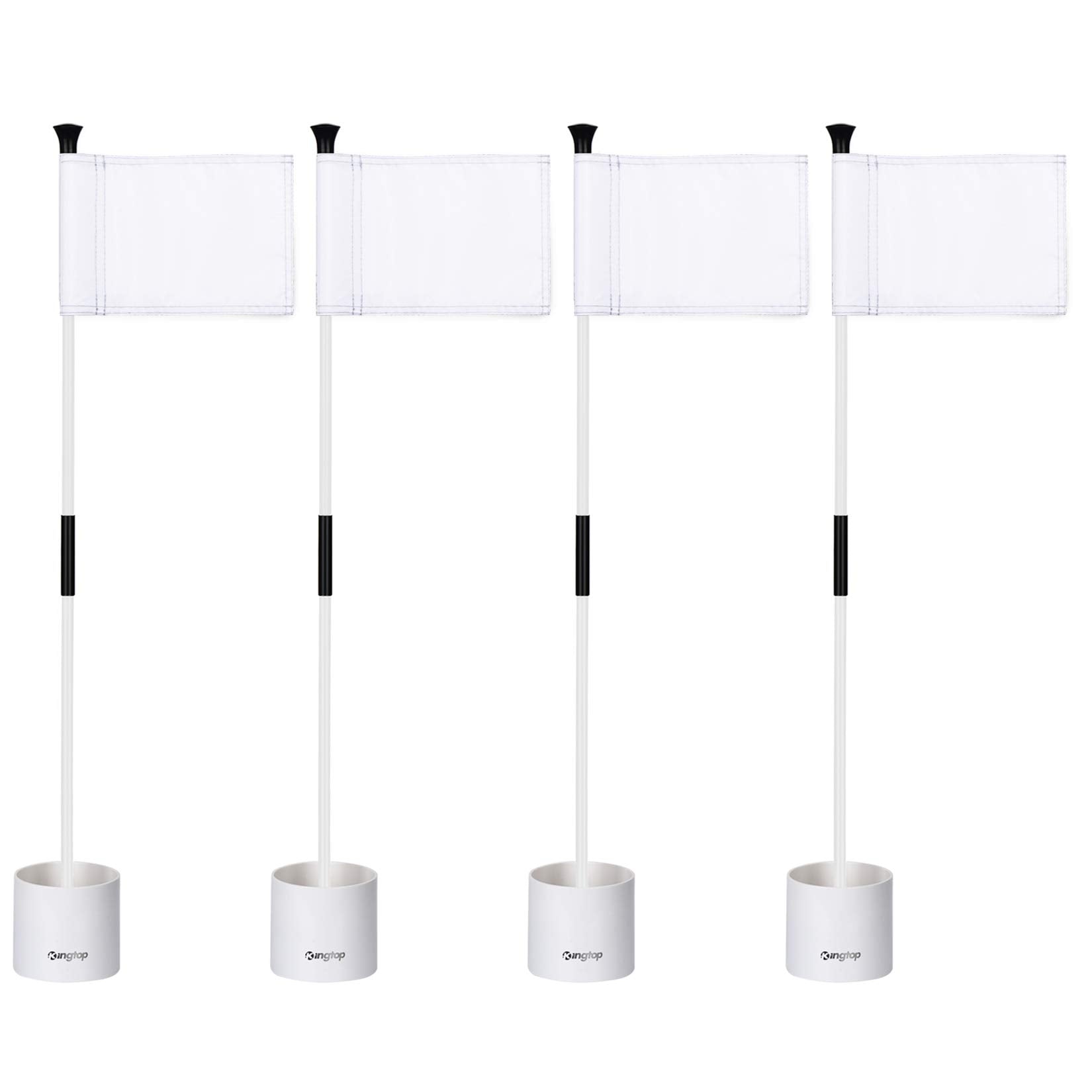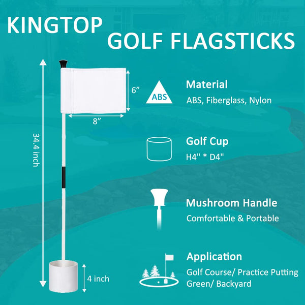 B>Bring Life to the golf Fun with KINgTOP Mini Pin FlagsB> B>Packaging Including:B> 4-Pack: 2-section flagstick with pole base, golf putting cup, Solid flag, and mushroom cap B>PRODUcT SPEcIFIcATION:B> B> LengthB> Flagstick with golf cup: 344 inches B> Qualified Details (3 Parts)B> B>1 golf cupB> Material: ABS plastomer Height: 4 inch 4inch for Outer diameter 1inch for inner diameter Drains design for outdoor & indoor using B>2 Flag poleB> Material: Fiberglass Rod diameter:05inch Smooth two-section connection with thread hole and pin Leave a little space on the top of pole without thread so that you can rotate the direction of flag as you wish B>3 FlagB> Material: Nylon 420D Dimension: 8L * 6W B>Others:B> Aesthetics-design mushroom cap is convenient for you to carry out Application: golf Training course, Driving Range, Practice Putting green, Backyard, garden, etc