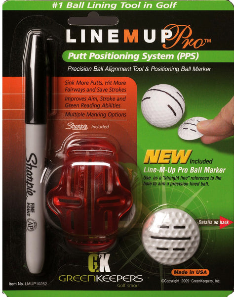 Line M Up snaps onto your golf ball to allow you to easily and accurate add alignment and identification marks. There are many different marking options that allow for a variety of uses. Use your marks to align your shot or tell if your putt is rolling straight. Line M Up also works great to add unique identifiers to you ball. The Line M Up Pro Ball Marker enables you to mark your straight line to the pin to sink more putts. Includes a Sharpie to mark your ball. Conforms to USGA rules.