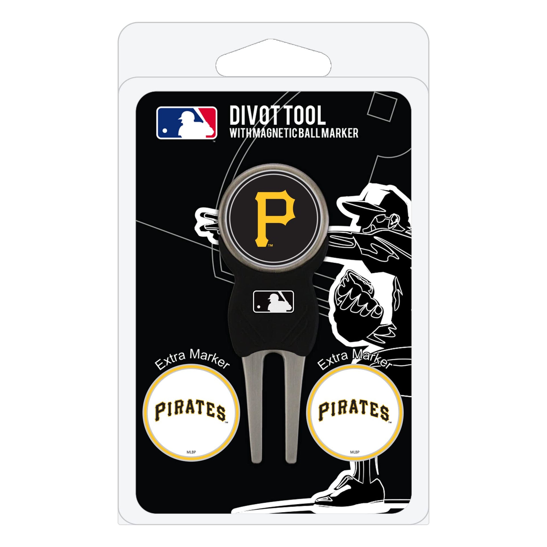 - Q: What is included in the Team Golf MLB Pittsburgh Pirates Divot Tool Pack? A: The pack includes a sleek Signature divot tool and three double-sided enamel color fill magnetic ball markers with a nickel color finish.