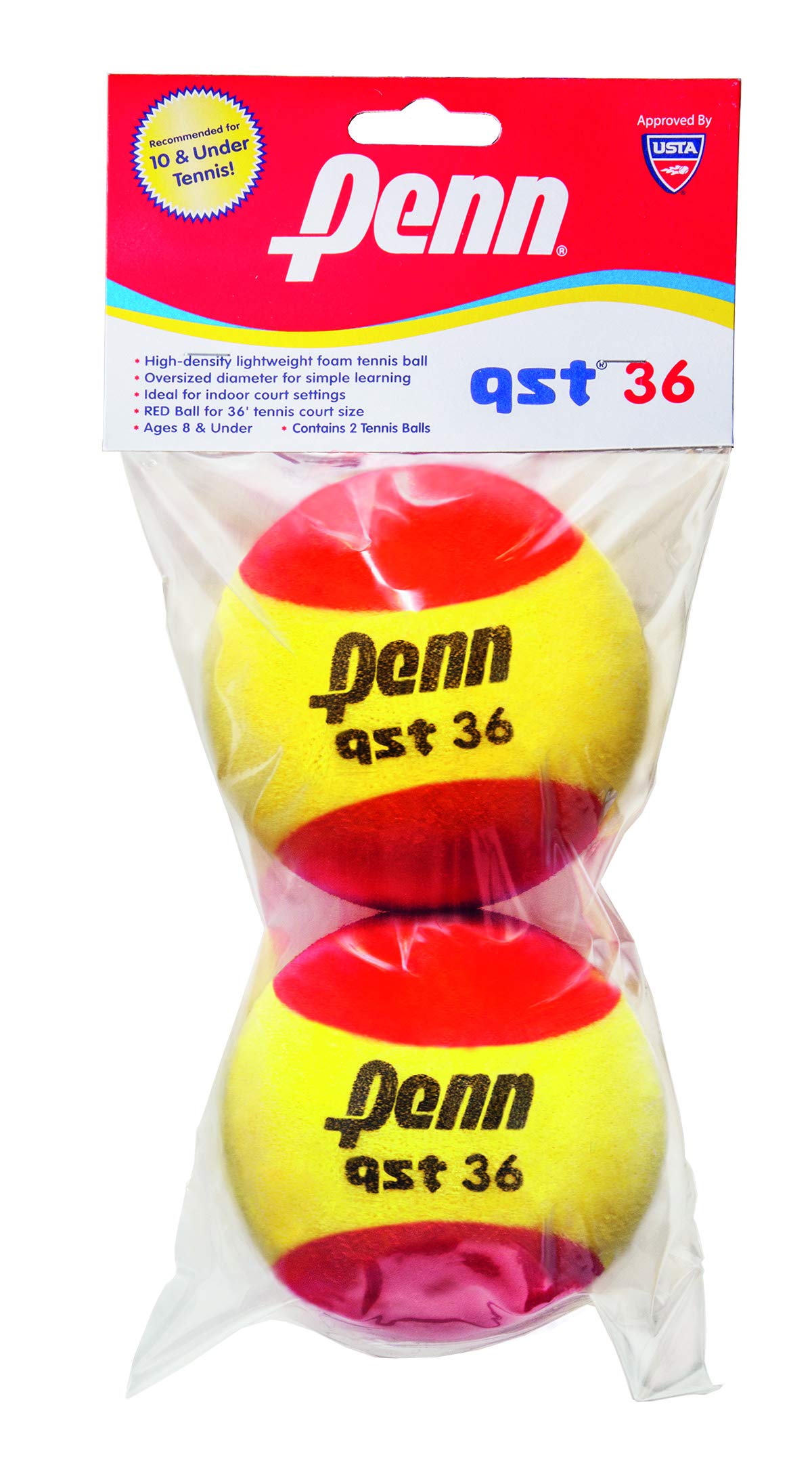 If youre looking to give your future Open champion a perfect start, Penn tennis balls are the number one choice The best-selling tennis ball in America, Penn is the standard by which all others are measured An ideal tennis ball for kids age 8 and under, the QST 36 foam features a high density for controlled bounce and greatly reduced speed The beginner ball is great for young players still mastering the basics of hand eye coordination and ball control Everyone has to start somewhere start your children off with the best Approved by the USTA for the 10 and Under Tennis Program Penn QST Red tennis balls are intended for 36 foot courts