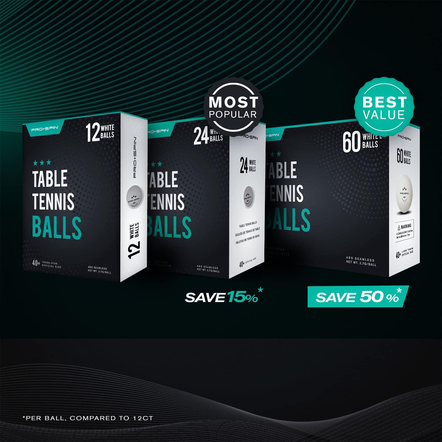 Pro Spin Ping Pong Balls - White 3-Star 40+ Table Tennis Balls (Pack Of 12) | High-Performance Abs Training Balls | Ultimate Dur