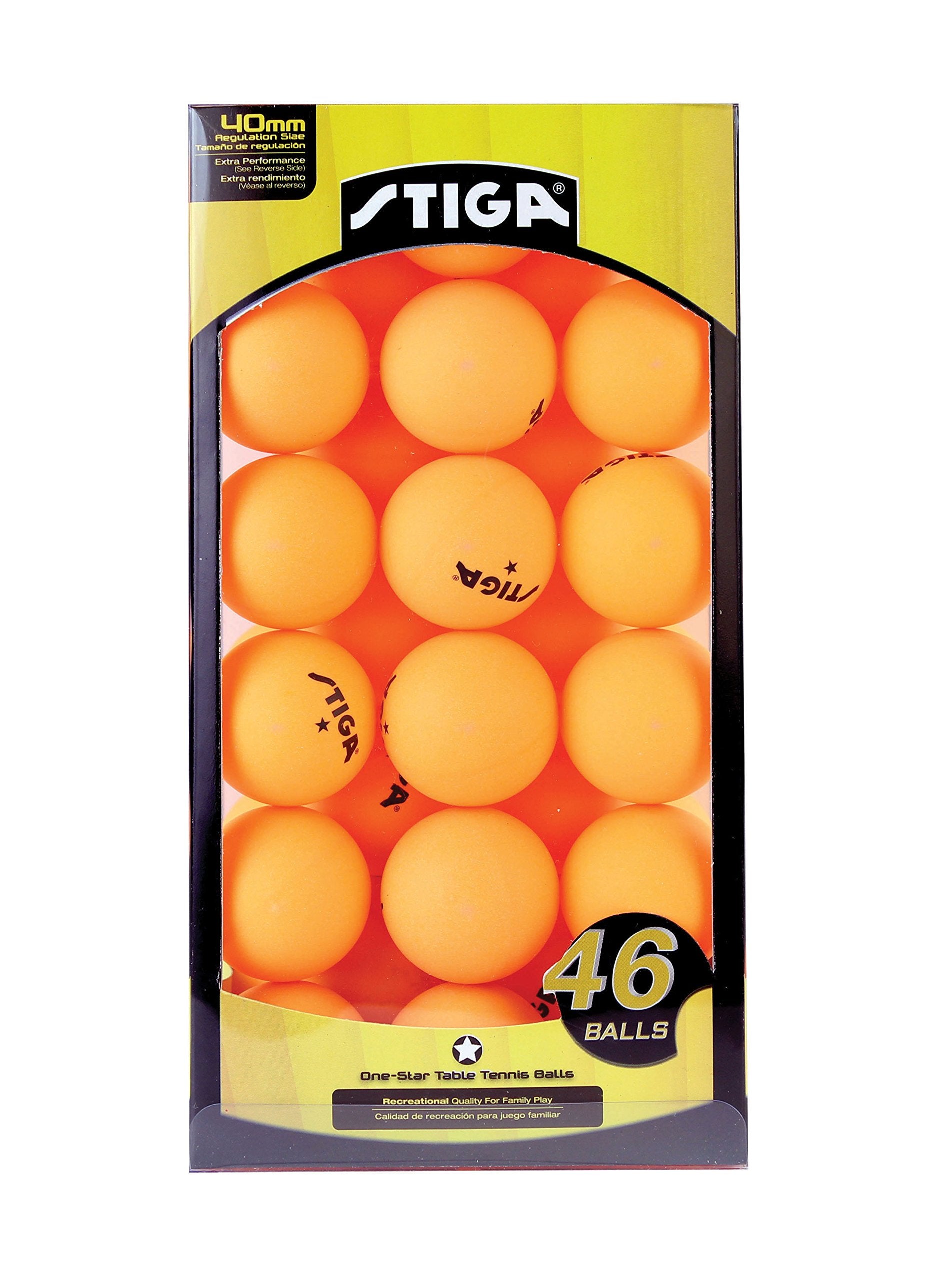 One-Star Orange Table Tennis Balls from Stiga includes (46) 40 mm ITTF regulation size white table tennis balls.