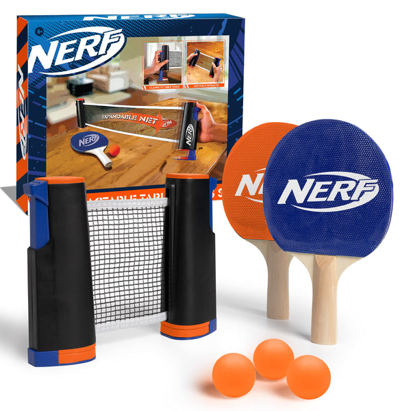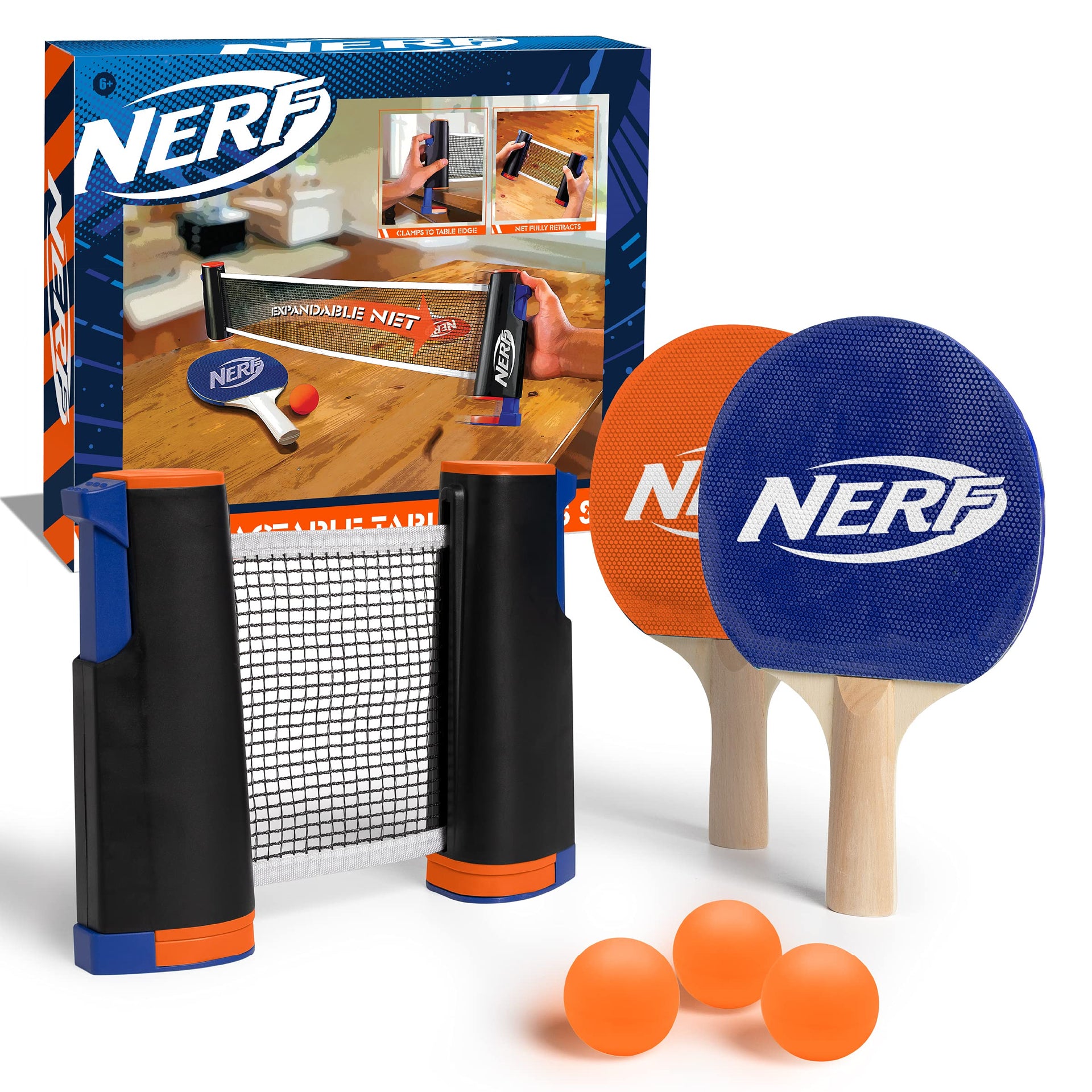 Nerf 7-Piece Retractable Tabletop Tennis Game Set, Play Almost Anywhere With Expandable Net, 2 Paddles And 3 Balls, Includes Con