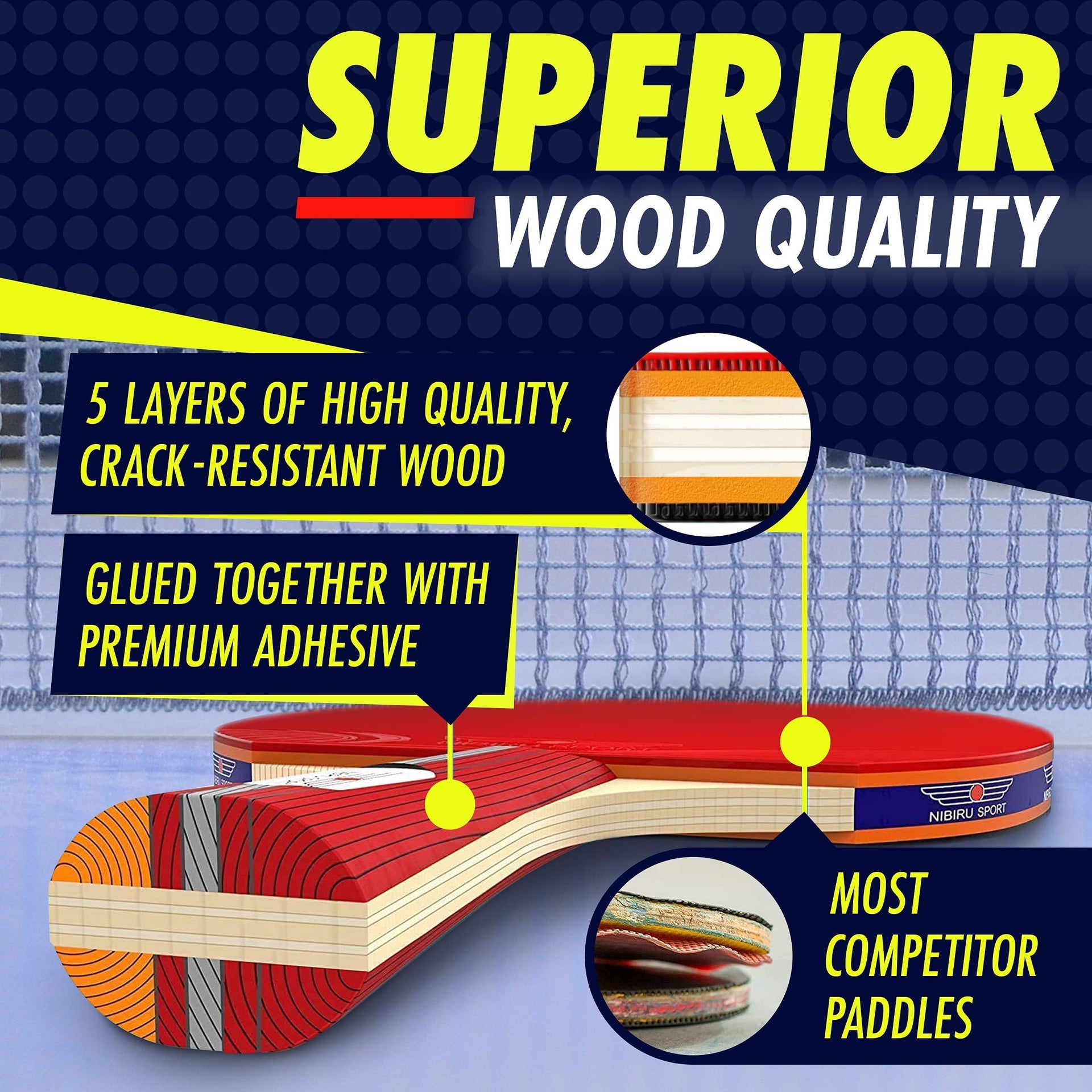 Nibiru Sport Professional Ping Pong Paddles Set Of 4 - Table Tennis Paddles Set Of 4 With 8 Balls And Carry Bag/Storage Case - T