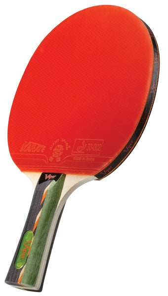 The ultimate in high performance Table Tennis Paddles is the Viper Four Star Table Tennis Paddle. The quality starts with the construction. The solid wood handle gives a comfortable grip for long games or playing sessions. A Four Star Racket is designed to give you the edge in high stakes game against skilled opponents. For advanced players looking for strong competition, the higher speed rating on this racket will allow you ace your opponents. This paddle also allows you to introduce fast spinning action to your game for an added layer of strategy. Dominate the competition with the Viper Four Star Paddle!