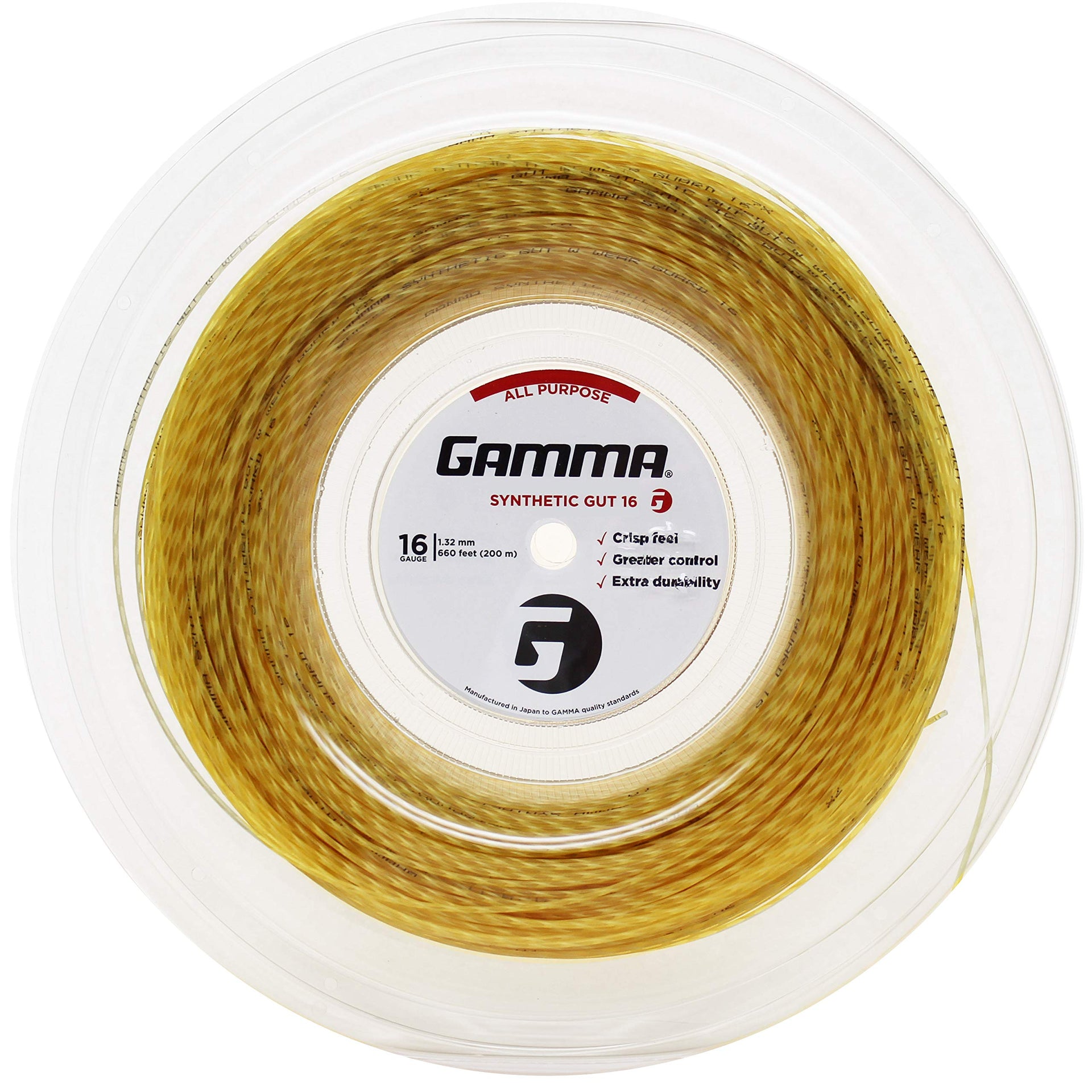 - Q: What is the length of the Gamma Sports 16g Synthetic Gut Tennis String Reel? A: The Gamma Sports 16g Synthetic Gut Tennis String Reel is 720 feet long.