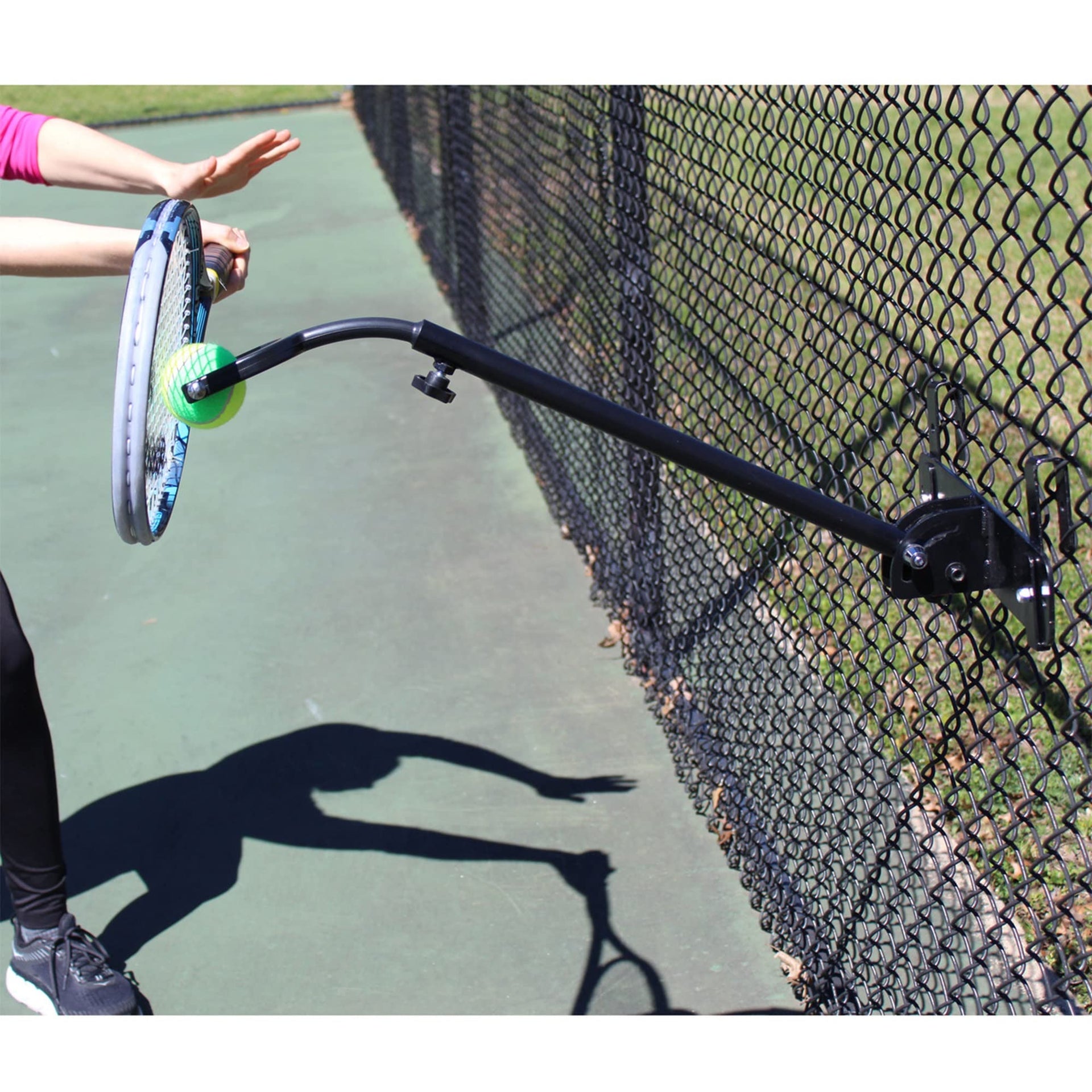 The Topspin Solution is finally here. Affordable, practical for home or court use, for both players and coaches, and for ALL ages and skill levels. Practice virtually ALL shots in tennis, although most will primarily use it for topspin groundstrokes. You can even practice both slice and kick serves! Just remember to watch the videos on our website to see exactly how to use for maximum success and improvement! Please view pictures to see the many convenient ways you can use the Topspin Solution.