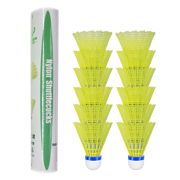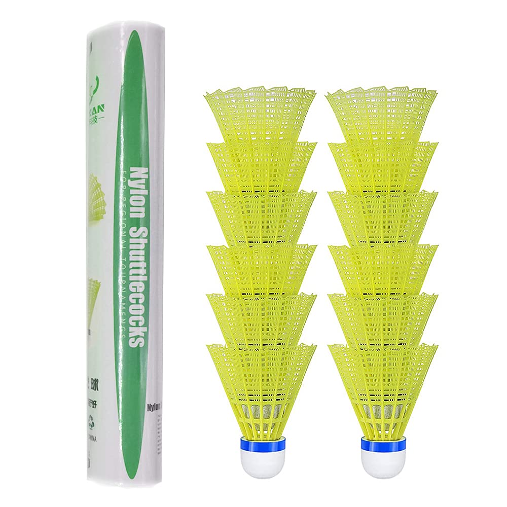 color:Yellow Speed:77 grains-High Speed Badminton Balls Flying: Resistance to play: Sold:12 count badminton shuttlecocks High Quality Nylon Shuttlecocks:Made of high quality nylon,more durable than other feather badminton balls More Durable:Premium material and sturdy structure provide a continuously bounce and make the ball more durable to play Multi Purpose:Suitable for entertainments,training and exercise fitness,especially for trainers,amateurs,beginners and family play