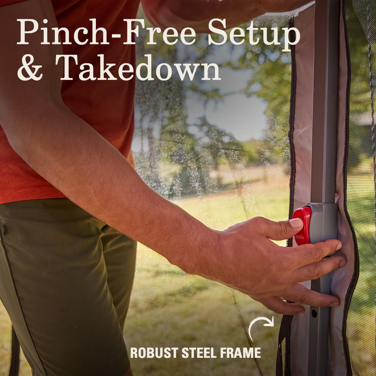 Bring on the bug-free outdoor adventures with the Back Home screen canopy tents. Lounging with the family in the backyard or hanging with friends in the park? The Back Home 10.5 x 9 Screen Tent sets up easy using a one-push center hub with OnePeak technology. Plus, we made sure the screen tent fits over a picnic table so you can eat inside the enclosed mesh walls without the pests.