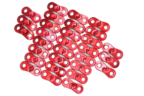 Name: Double eye wind rope buckleMaterial: Aluminum alloyColor: RedSize: Length 37mm*Width 16mm*Thickness 2mm/1.4*0.6*0.08inch, Aperture 7mm/0.27inchQuantity: 30pcsWeight: 3gUse: fixed tent, sky curtain and other rope