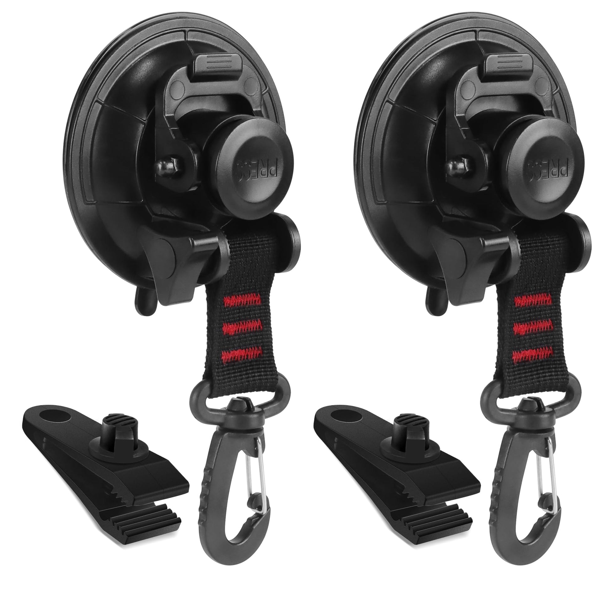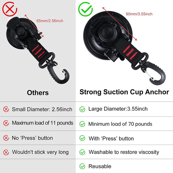 Heavy Duty Suction Cup Anchor 2pcs Strong Suction Cups with Hooks and 2pcs Tarp Clips Deavy Duty Lock Grip for Tie