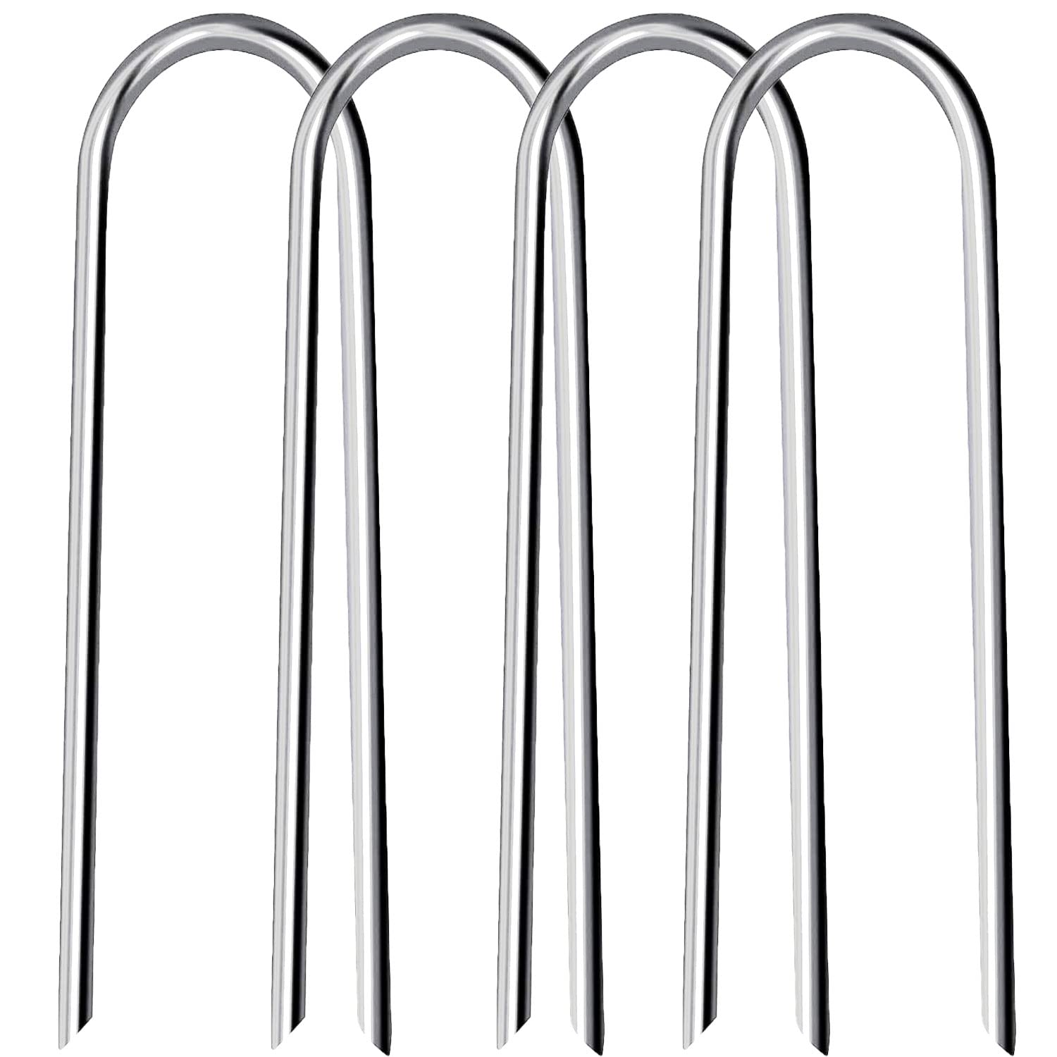 Heavy Duty Trampoline Stakes Anchors High Wind Stakes U- Shaped Sharp Ends Ground Anchor Galvanized Steel 11.8Inch Safety Stakes