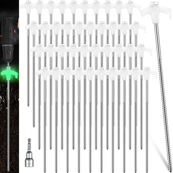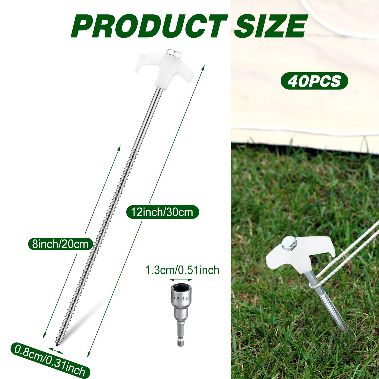 Features: Strong enough: The heavy duty tent stakes for winds are strong enough to fix ordinary outdoor travel tents, awning, canopy, canopies, tarps, picnic mats and other outdoor equipment. Share with others: You can share our camping stakes with your neighbors and family members, they will feel satisfied when they receive these practical tools, and your relationships will be improved. Specifications: Material: carbon steel, plastic Color: as shown on the pictures Size: Tent stakes: approx. 12 inch/ 30 cm long Thread: approx. 8 inch/ 20 cm long, approx. 0.31 inch/ 0.8 cm in diameter Hex head driver: approx. 0.51 inch/ 1.3 cm in diameter Package includes: 40 x Threaded tent stakes 1 x Hex head driver Notes: Pointed items are included, it is recommended to wear tool gloves to avoid injury when using and please keep it away from kids. Manual measurement, please allow slight errors on size. The color may exist a slight difference due to different screen displays. Small parts included, please keep them away from little kids to avoid swallowing risk.