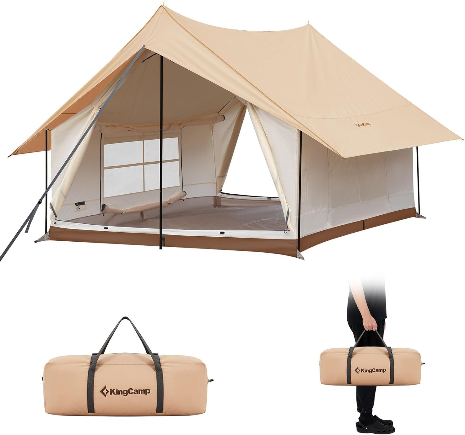 Kingcamp 6-8 Person Canvas Tent For Camping Waterproof & Windproof Cabin Tents With Large Mesh Windows, Easy Setup, All Season W