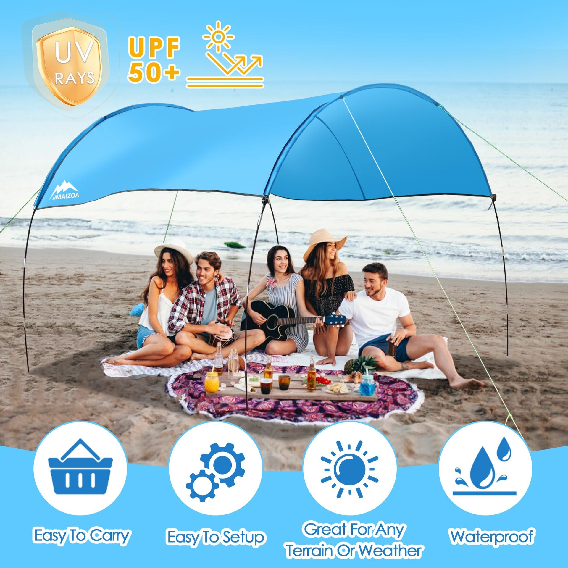 Maizoa 10 '*8.8 '*7.2 ' Beach Shade Tent, Enlarged Size, With Upf50+ Protection, Windproof And Waterproof, Suitable For Beach, L