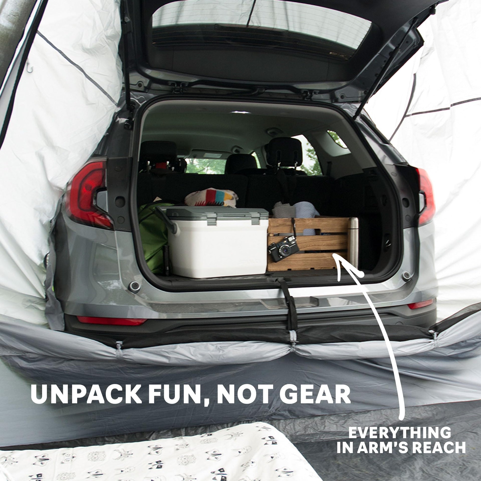 Go ahead and get lost this camping season. With the Backroadz SUV Tent there's no need to unpack, due to its intuitive vehicle sleeve that connects you to your gear while keeping bugs/rain where they belong - outside. Like you, this tent was built for the outdoors, so rain-or-shine, you'll be ready for your next adventure.