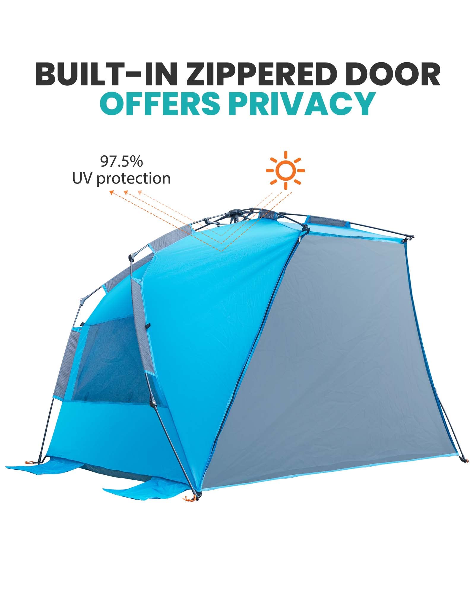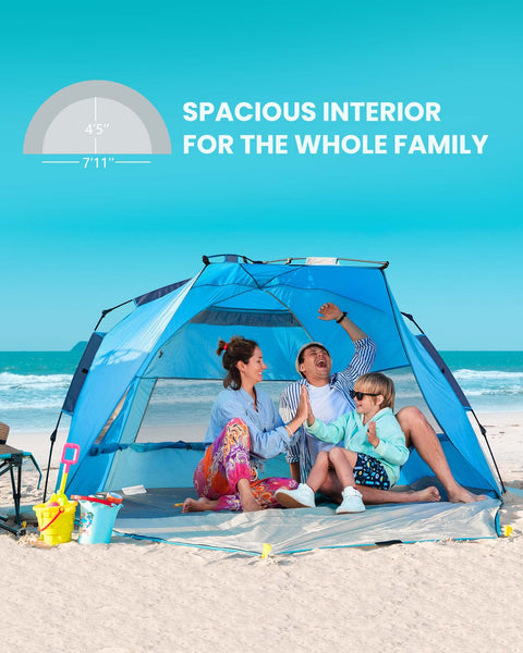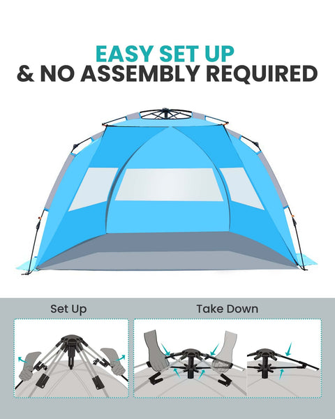 OutdoorMaster Pop Up Beach Tent for 4 Person - Easy Setup and Portable Beach Shade Sun Shelter Canopy with UPF 50+ UV Protection Removable Skylight Family Size - Blue