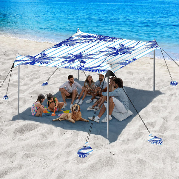 Raynesys Beach Tent Sun Shelter, 10 X 10 Ft Beach Canopy Tent Sun Shade, Upf50+ Tents Canopy With 8 Sandbags & 4 Stability Poles
