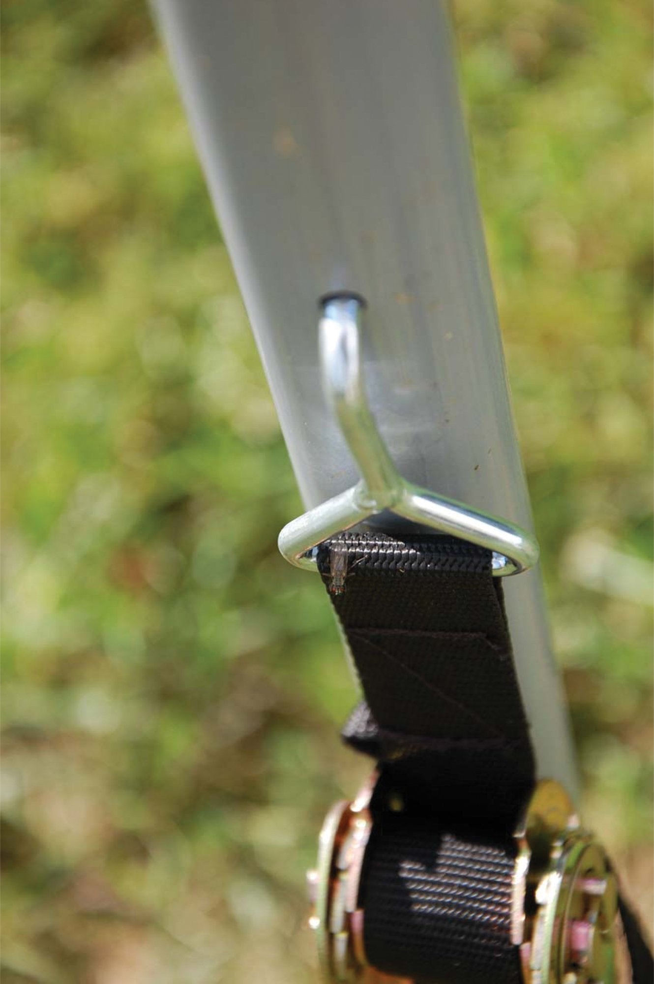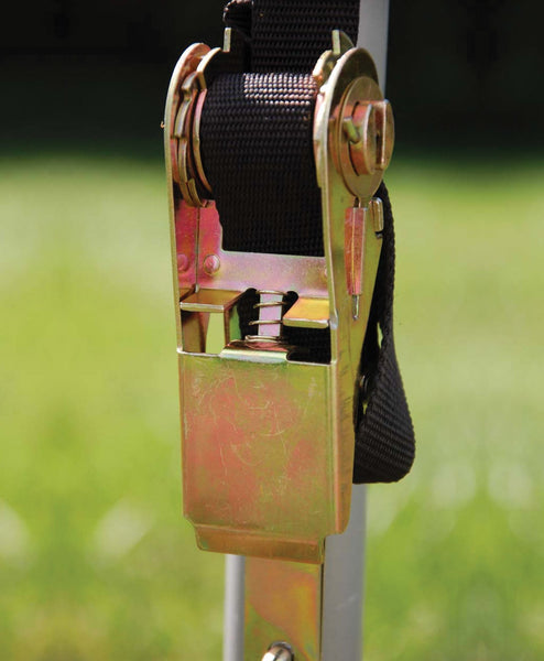 The Ratchet TITE Anchor Kit by ShelterLogic combines the versatility of Easy Hook Drive anchors with the ease of Ratchets for a rock solid anchoring solution for sheds, canopies, garages and storage shelters. It delivers immediate and continuous frame to anchor tightening. The ShelterLogic Ratchet TITE Anchoring Kit is ready to install and includes 4 Easy Hook cast steel anchors and drive rod. The Kit is versatile and can be used effectively in nearly all soil conditions. The heavy duty steel ratchet hook with webbing ensures a solid frame to anchor connection. The Rugged plated metal ratchets with sturdy webbing and S Hook connectors make the tightening process quick and easy. Quick attach drill guide template clips right onto frame for easy location of the ratchet connection. Proper anchoring of your shelter is essential to the safety of your items and your building. Ensure it anchored securely to manufacturer specifications. Manufacturer recommends one anchor per leg