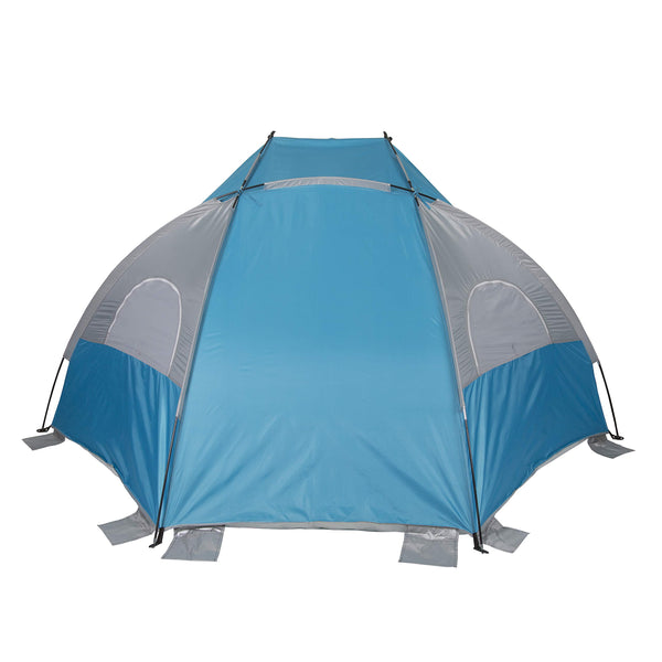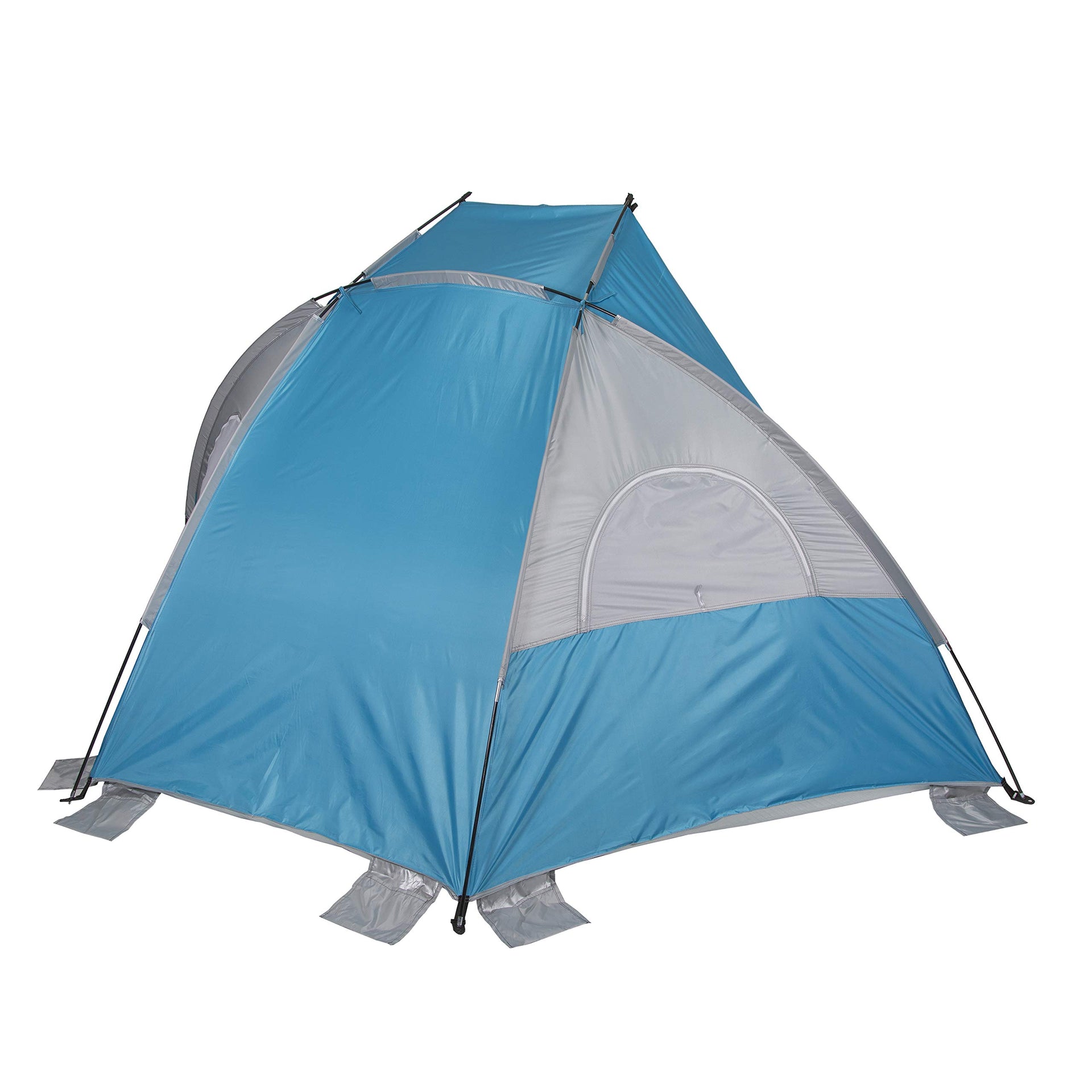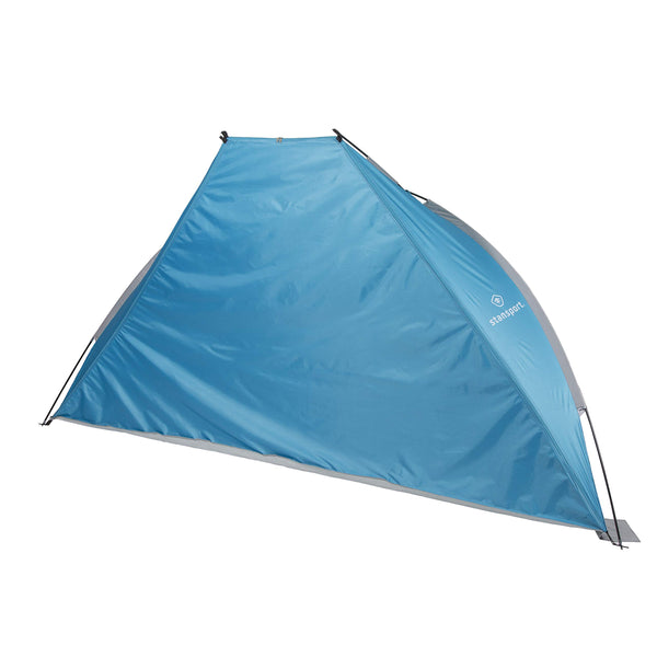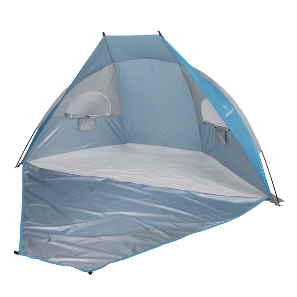 Gearing up for a beach day? Bring along our Stansport UPF 50+ Beach Cabana for all-day shade when you need a break from the sun. Zipped up, it doubles as a changing room. The zippered door lays flat as a welcome mat, or a spot to curl up for a lazy nap. Mesh windows add more air flow on those extra hot days. This ultra-light weight design is easy and fast to set-up. Fiberglass poles keep your cabana stable on windy days. Our beach cabana comes with a compact carry bag and stakes.