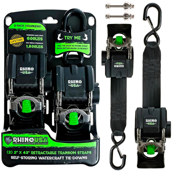 Upgrade your boat trailer setup with Rhino USA Retractable Boat Trailer Transom Straps, designed for ultimate convenience and reliability. Featuring an EZ Retract System, these straps offer effortless storage and quick retraction, making securing and releasing your boat a breeze. Built with high-quality materials, they provide robust strength and durability to keep your boat securely in place during transport. The adjustable design ensures a snug fit on various transom sizes, while the included hardware makes installation straightforward. Whether youre a seasoned boater or a weekend enthusiast, these retractable transom straps streamline your trailer experience and enhance your towing safety.