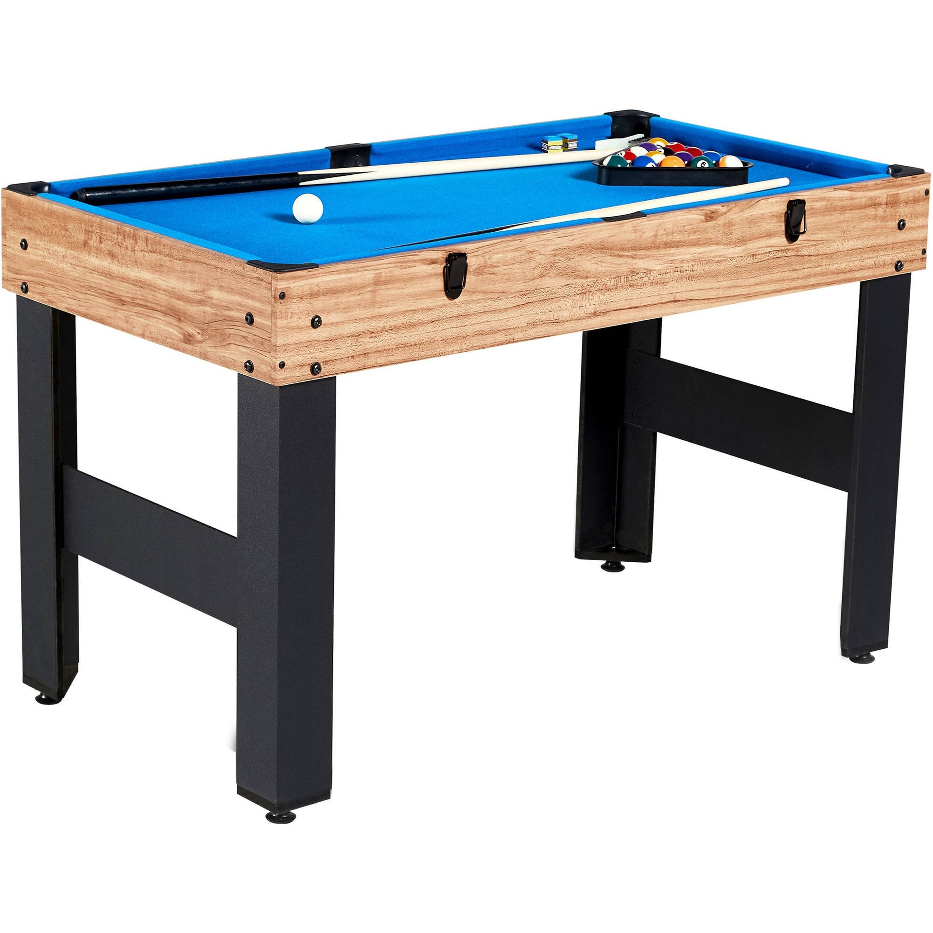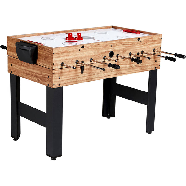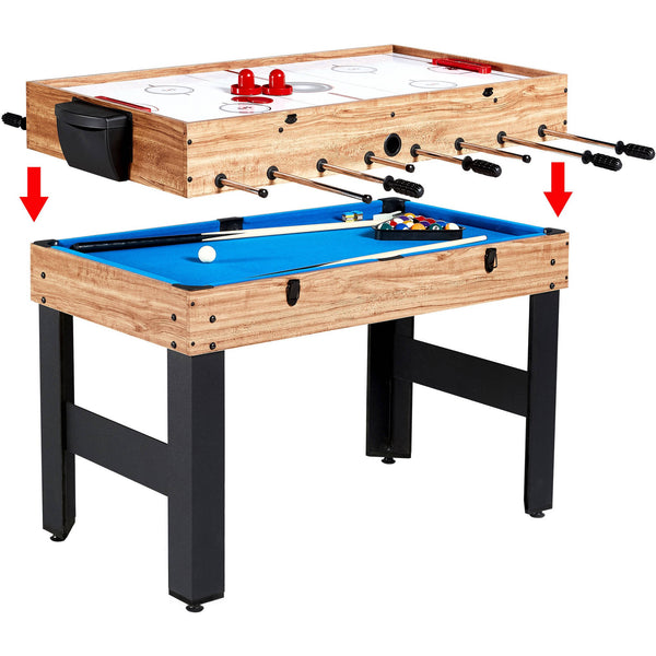 ?3 in 1 Multi Game Table?Multi game table comes with 3 interchangeable tabletops, which can be used for hockey, foosball and billiards. A smart combination of 3 exciting games is doomed to offer endless fun for you and your family. With the lock clasp and stack-up design, the game table is easy to switch over games.