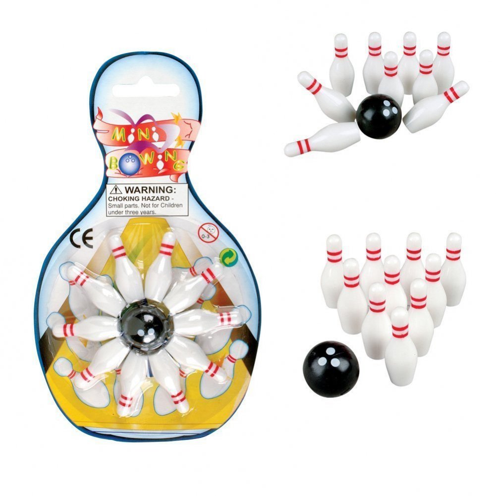 Kicko - Miniature Bowling Game Set For Kids, Play, Party, Fun, Etc.Product DescriptionSearching for a cool little accessory for your kids or just yourself?Well look no further than Kickos miniature bowling set.Kickos miniature bowling set comes with (12) 1 Inch bowling pins with a marble bowling ball for the perfect mini bowling set.Kids will absolutely love this miniature bowling set.Small size makes it perfect for children to play with.Kids can bring them to school and share the fun with their friends or anywhere in general!All it takes is a little setup.This miniature bowling game makes such a great party favor!Comes in a blister card packaging so they can be put anywhere.Stuff into goodie bags, gift bags or prize bags for games.This miniature bowling game can also be used a prop.Miniature size is great to go with miniature figures to make a cool funny video out of.Can even be used as a display piece wherever you want in your home or office!Kicko miniature bowling game is great for people of all ages.Anybody can get some quick fun out of these no matter how old you are.You can find a use for it.Get the best with Kicko! valentines day gifts, valentines pencils, valentines day pens, valentines goodies, valentine's day gifts for kids bowling favors for tweens bowling birthday party favors bowling prize miniature bowling pin kids bowling set