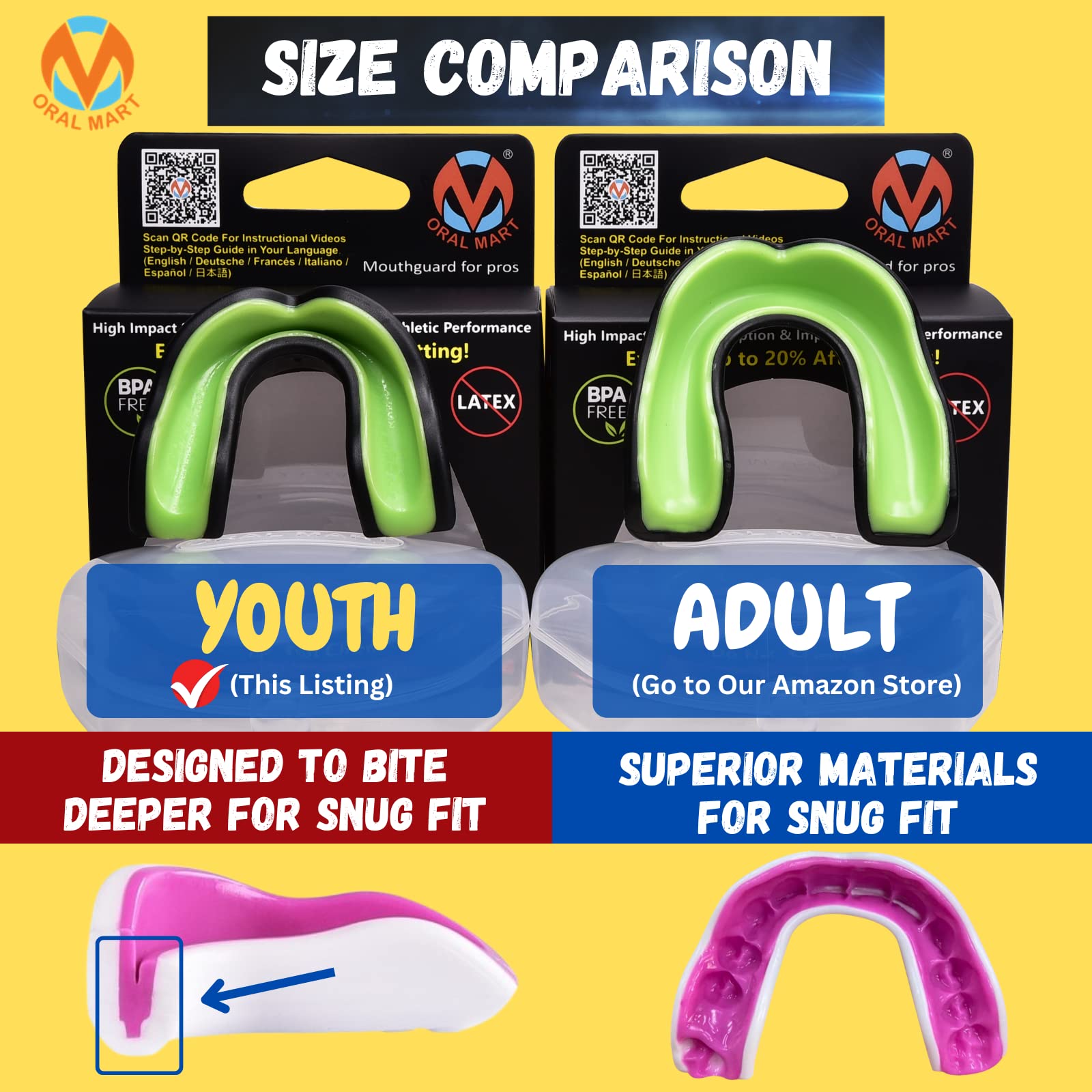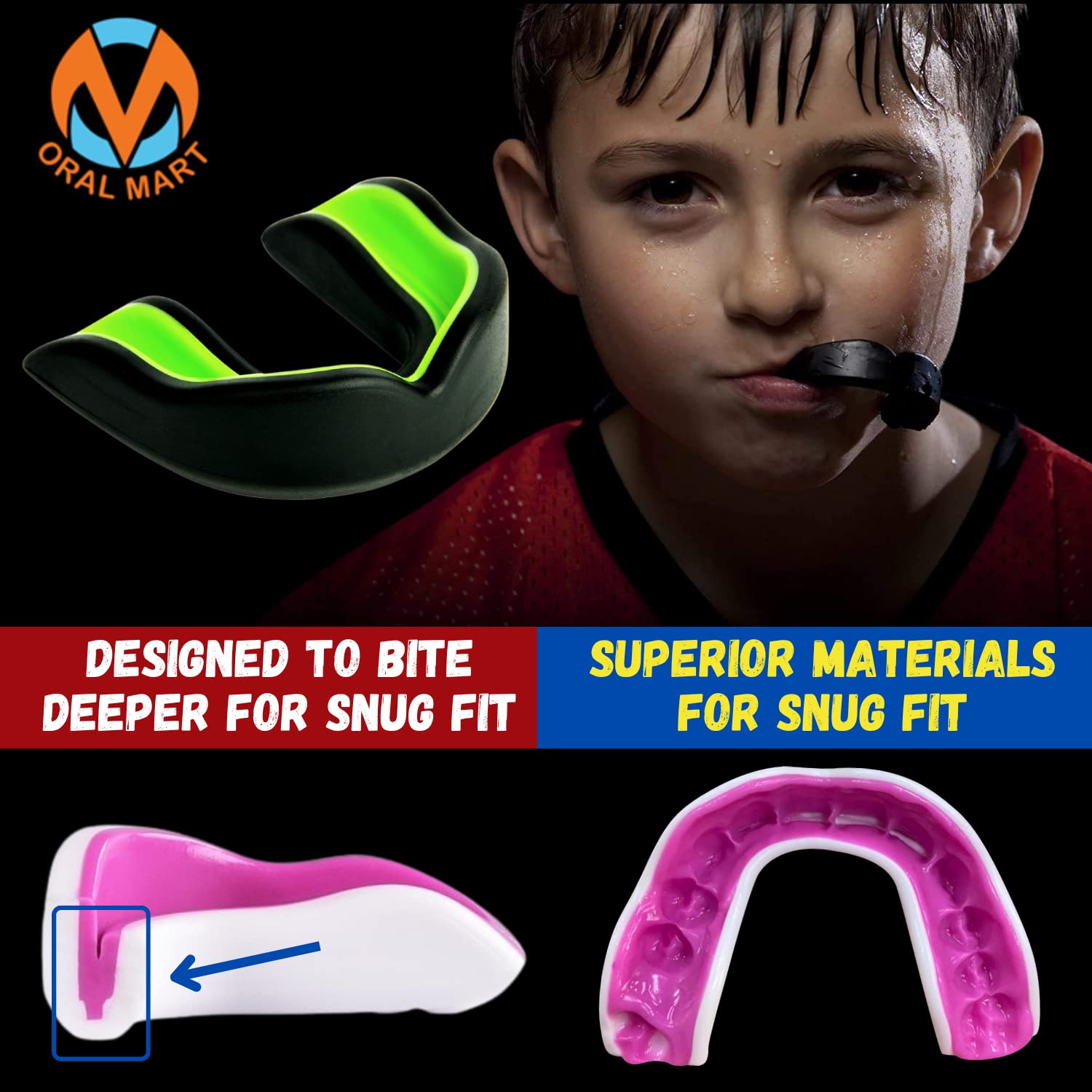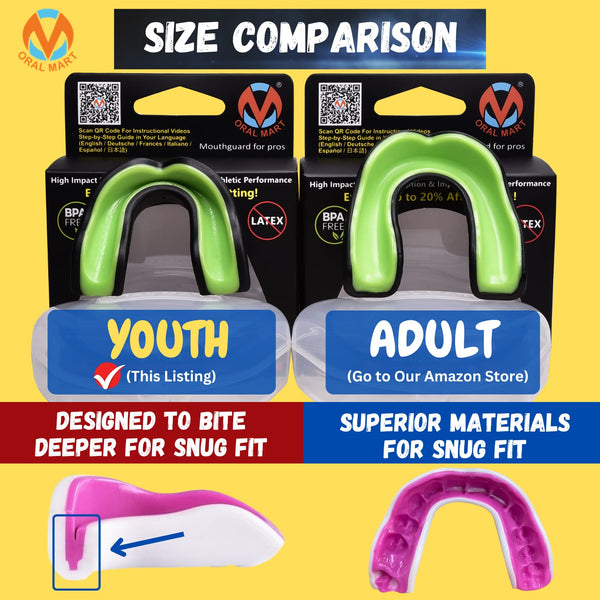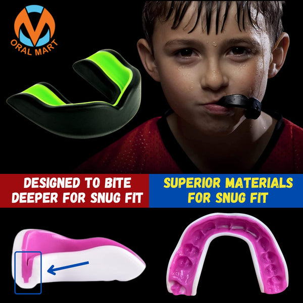 Why Oral Mart Youth Sports Mouth Guard for Kids? All of our mouth guards are safe for adults and kids and they are absolutely BPA Free. While some mouth guards may look similar, what it really matters is the material. Customers are extremely important to us. We want to make sure that you are 100% happy with our mouth guards. What Sports Need Sports Mouth Guards? Any Contact Sports like Rugby Football, Ice Hockey, Brazilian Jiu Jitsu, Boxing, College Basketball, Mixed Martial Arts, Wrestling, Lacrosse. Oral Mart offers affordable, professional sports mouthguards. Our sports mouth guards come in many different varieties and colors, so you can pick up exactly what you need today at a great price! We know the importance of mouthguards, so we make sure our products are top-notch and able to properly protect you during training, exercising or during your game.